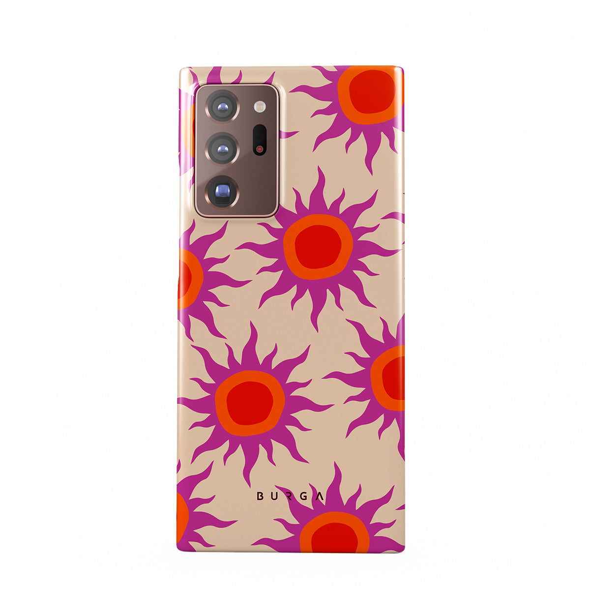 Discover the radiant serenity of the Sunset Glow design, a harmonious blend of soothing pastels and fiery suns. Vivacious viva magenta rays add a playful touch, perfectly balancing tranquility and dynamism. More than just a fashion accessory, this striking Samsung Galaxy Note 20 Ultra 4G / 5G phone case mirrors your unique personality and zest for life.