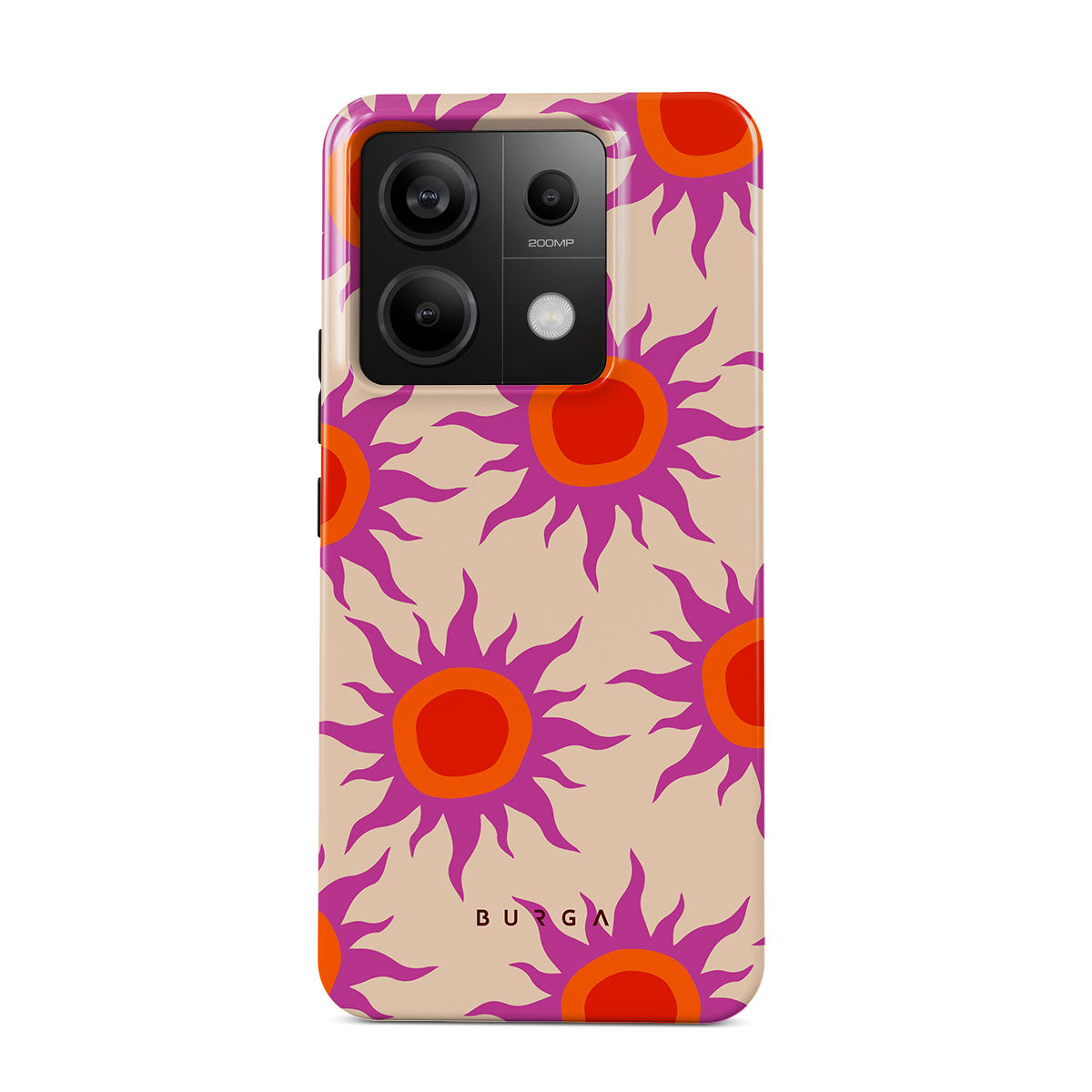 Discover the radiant serenity of the Sunset Glow design, a harmonious blend of soothing pastels and fiery suns. Vivacious viva magenta rays add a playful touch, perfectly balancing tranquility and dynamism. More than just a fashion accessory, this striking Xiaomi Redmi Note 13 Pro 5G phone case mirrors your unique personality and zest for life.