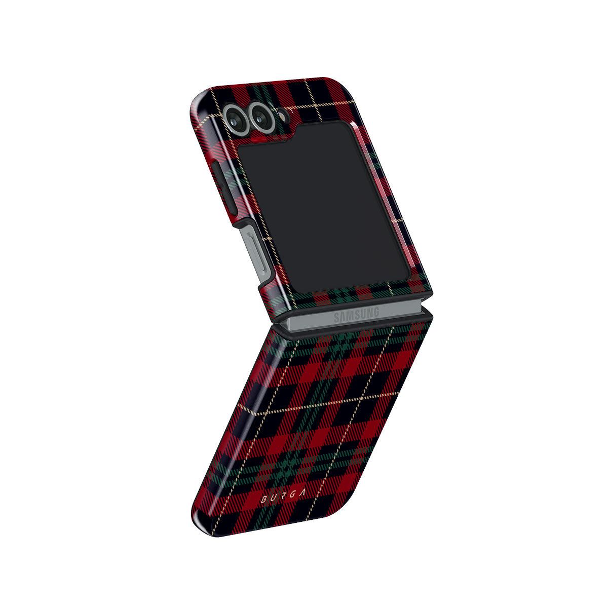Our Sweater Weather design blends the classic appeal of plaid with the cozy comfort of a holiday sweater, featuring deep reds, navy, and greens. This timeless pattern keeps your Samsung Galaxy Z Flip 6 Case phone case snug and stylish, echoing enduring elegance that lasts all year round.