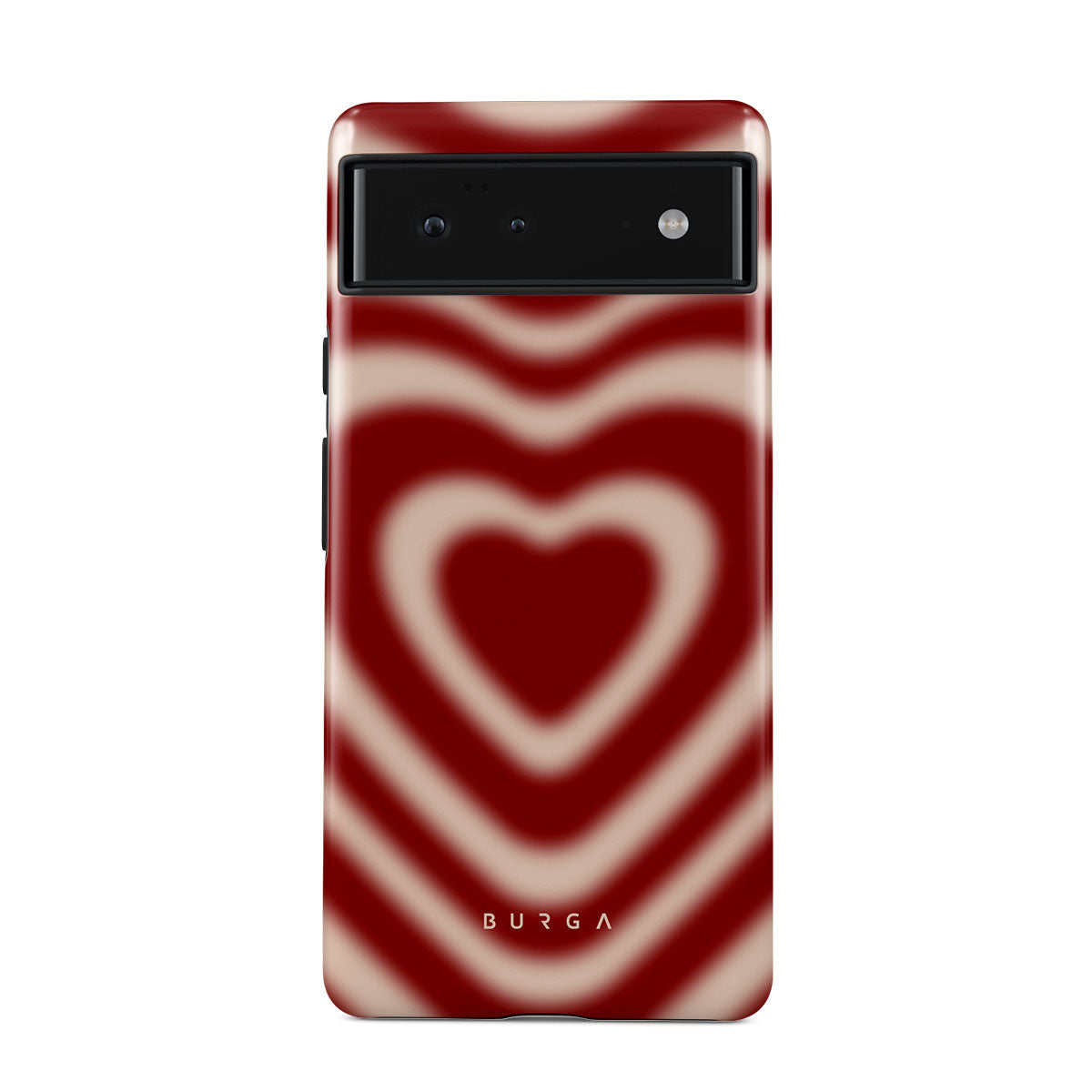 A hypnotic swirl, where deep shades of red dance together to form an iconic heart. Our Sweet Affair Google Pixel 6 Case phone case design merges passion with elegance, making it an evergreen choice for those who love without bounds.