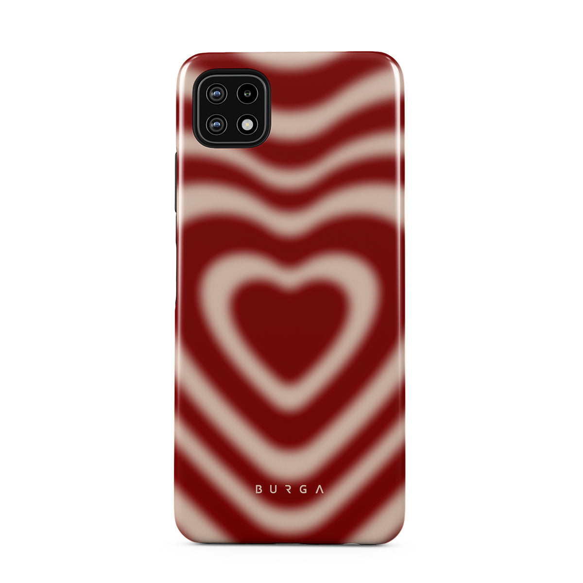 A hypnotic swirl, where deep shades of red dance together to form an iconic heart. Our Sweet Affair Samsung Galaxy A22 5G Case phone case design merges passion with elegance, making it an evergreen choice for those who love without bounds.