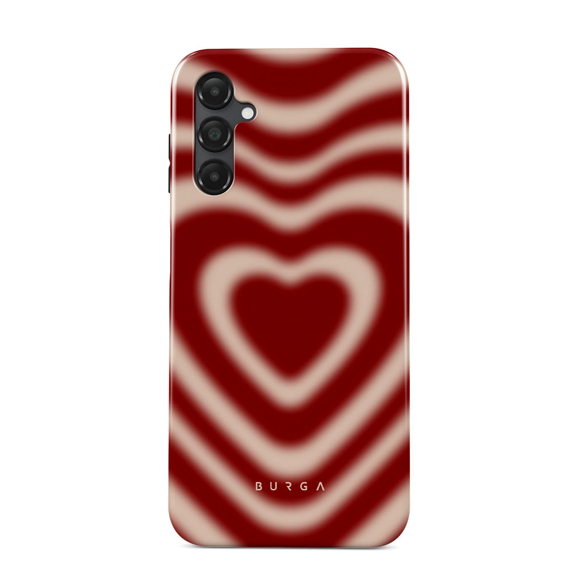 A hypnotic swirl, where deep shades of red dance together to form an iconic heart. Our Sweet Affair Samsung Galaxy A25 Case phone case design merges passion with elegance, making it an evergreen choice for those who love without bounds.