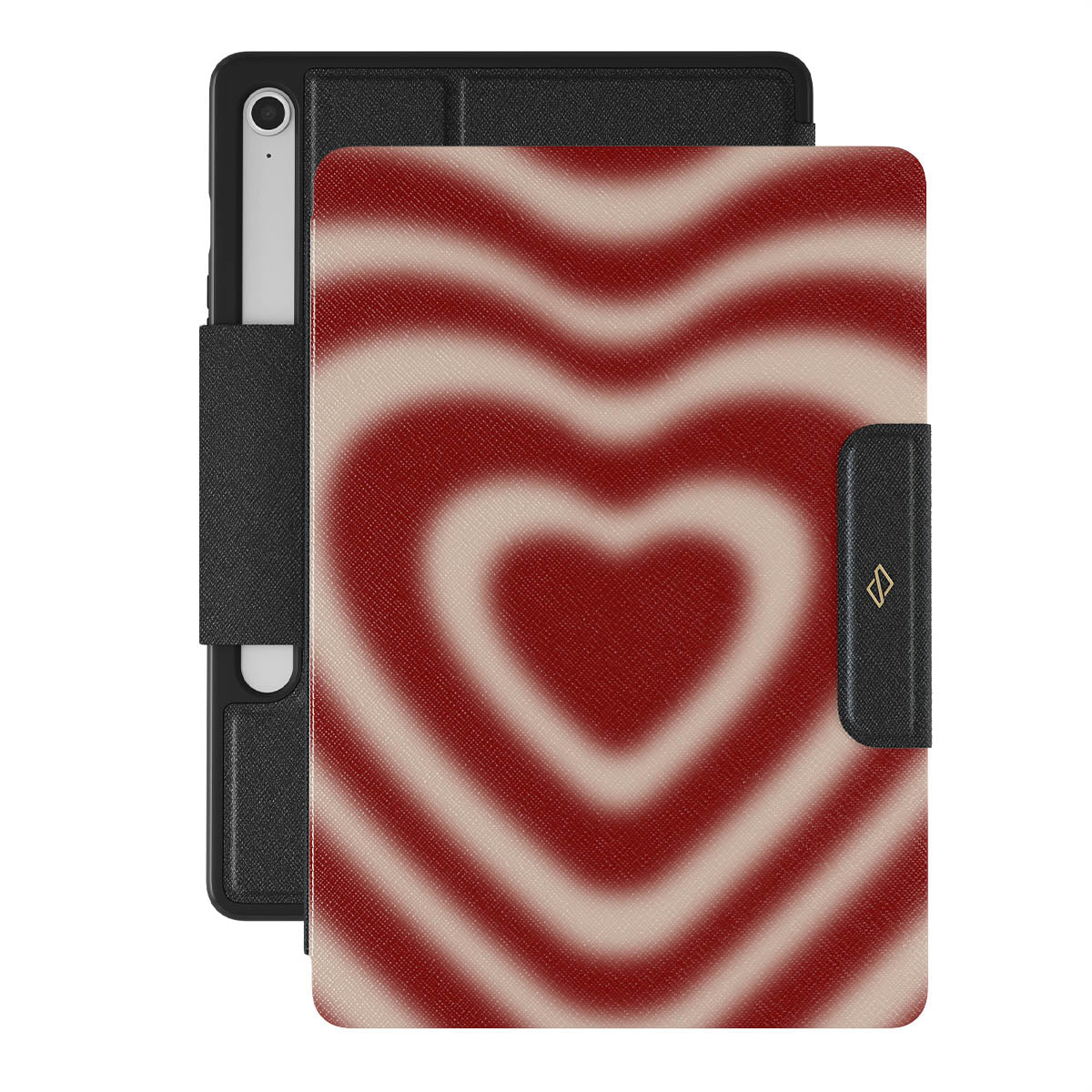 A hypnotic swirl, where deep shades of red dance together to form an iconic heart. Our Sweet Affair Samsung Galaxy Tab S10 FE folio case design merges passion with elegance, making it an evergreen choice for those who love without bounds.