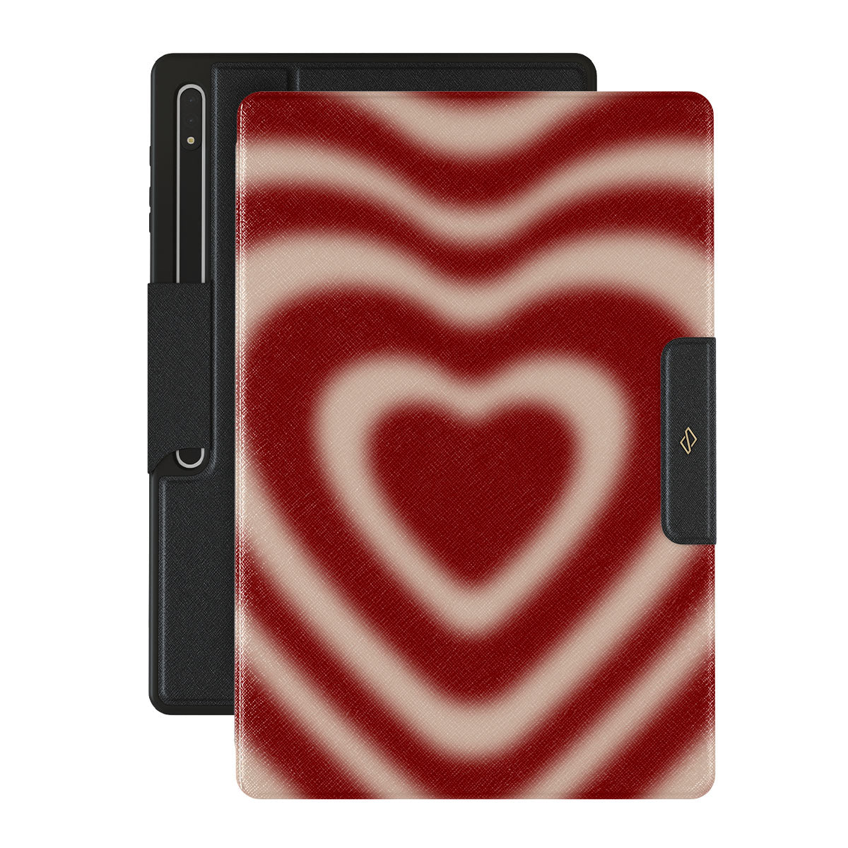A hypnotic swirl, where deep shades of red dance together to form an iconic heart. Our Sweet Affair Samsung Galaxy Tab S8 Ultra folio case design merges passion with elegance, making it an evergreen choice for those who love without bounds.