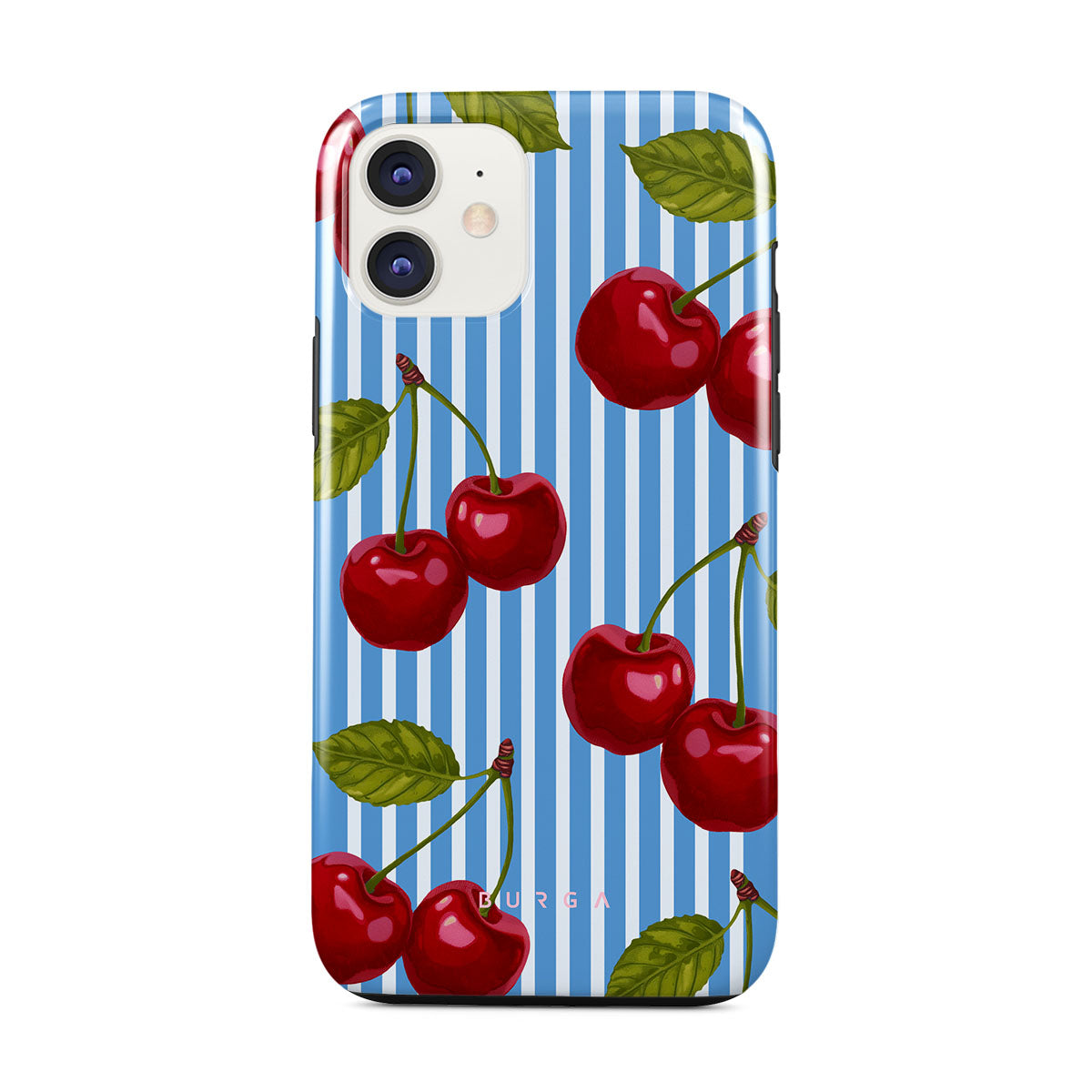 Cherries dangle like earrings from blue skies, a fun reminder of that first bite of summer, juicy and bursting with laughter. Meet our Sweet Moment iPhone 11 phone case design.