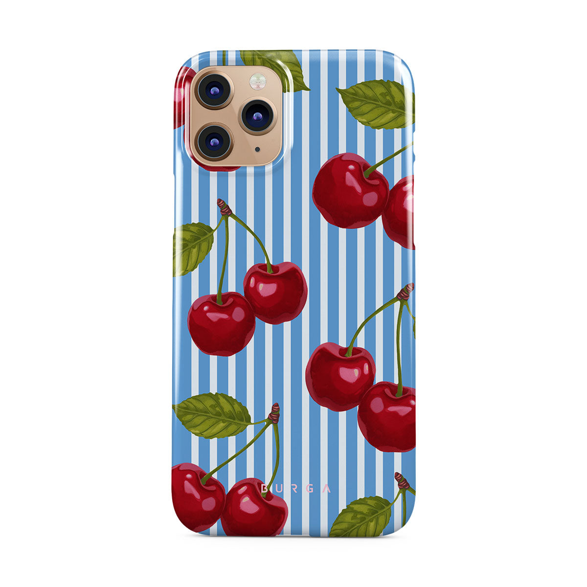 Cherries dangle like earrings from blue skies, a fun reminder of that first bite of summer, juicy and bursting with laughter. Meet our Sweet Moment iPhone 11 Pro phone case design.