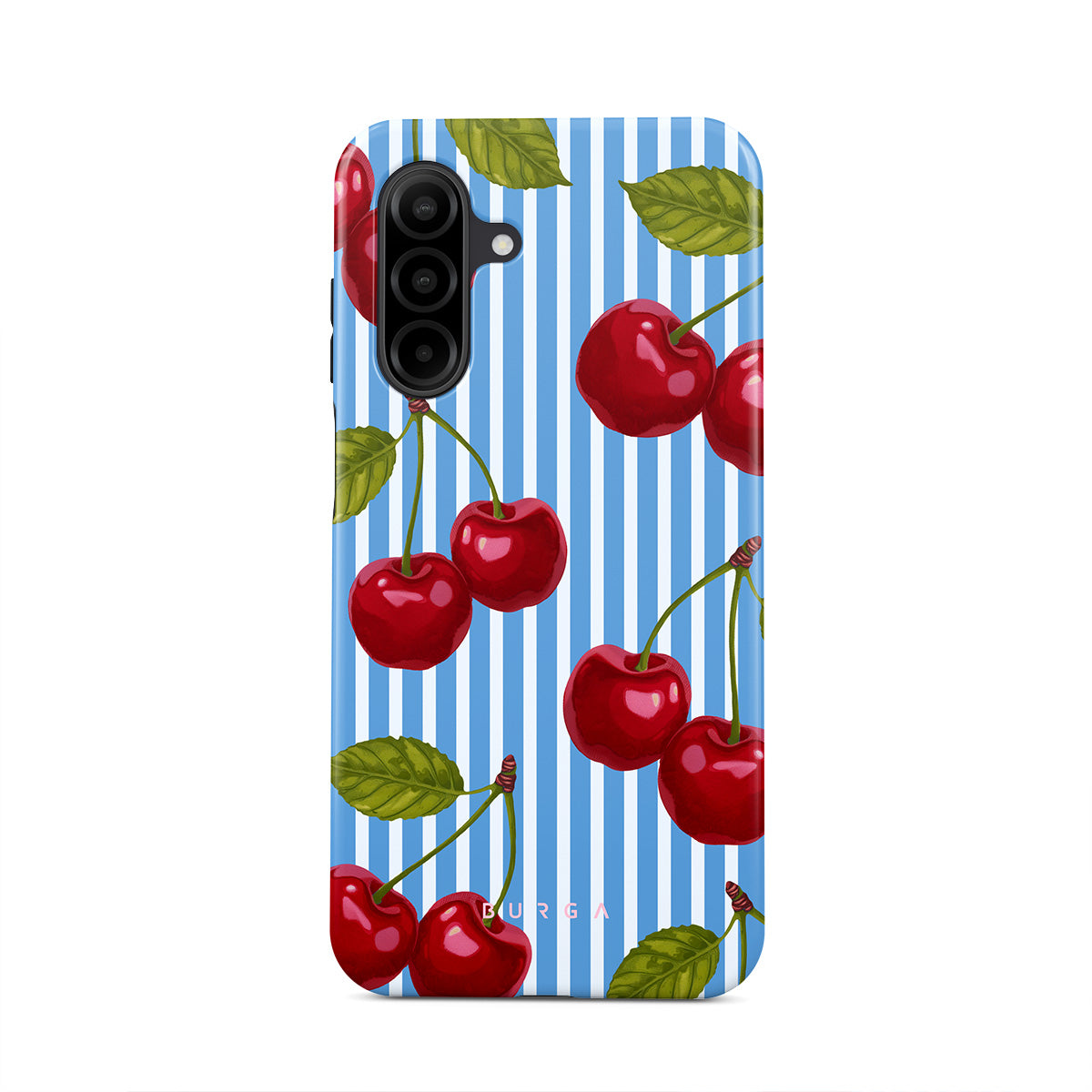 Cherries dangle like earrings from blue skies, a fun reminder of that first bite of summer, juicy and bursting with laughter. Meet our Sweet Moment Samsung Galaxy A26 5G phone case design.