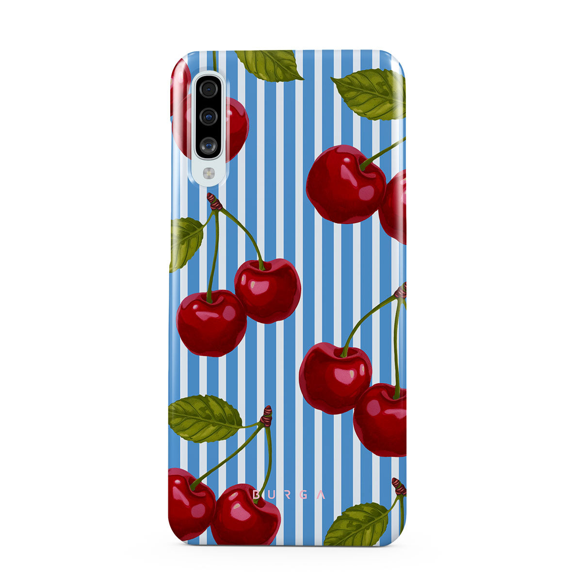 Cherries dangle like earrings from blue skies, a fun reminder of that first bite of summer, juicy and bursting with laughter. Meet our Sweet Moment Samsung Galaxy A50 phone case design.