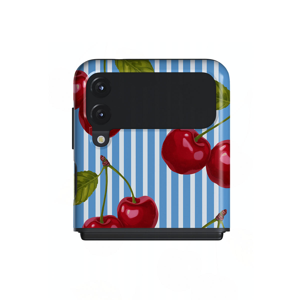Cherries dangle like earrings from blue skies, a fun reminder of that first bite of summer, juicy and bursting with laughter. Meet our Sweet Moment Samsung Galaxy Z Flip 3 phone case design.