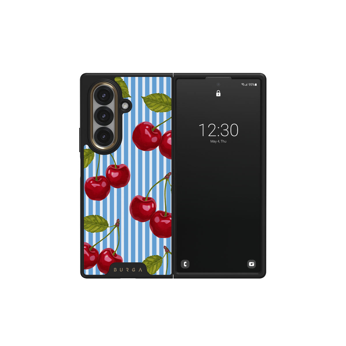 Cherries dangle like earrings from blue skies, a fun reminder of that first bite of summer, juicy and bursting with laughter. Meet our Sweet Moment Samsung Galaxy Z Fold 7 phone case design.