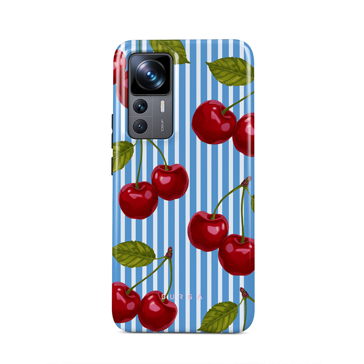 Cherries dangle like earrings from blue skies, a fun reminder of that first bite of summer, juicy and bursting with laughter. Meet our Sweet Moment Xiaomi 12T phone case design.
