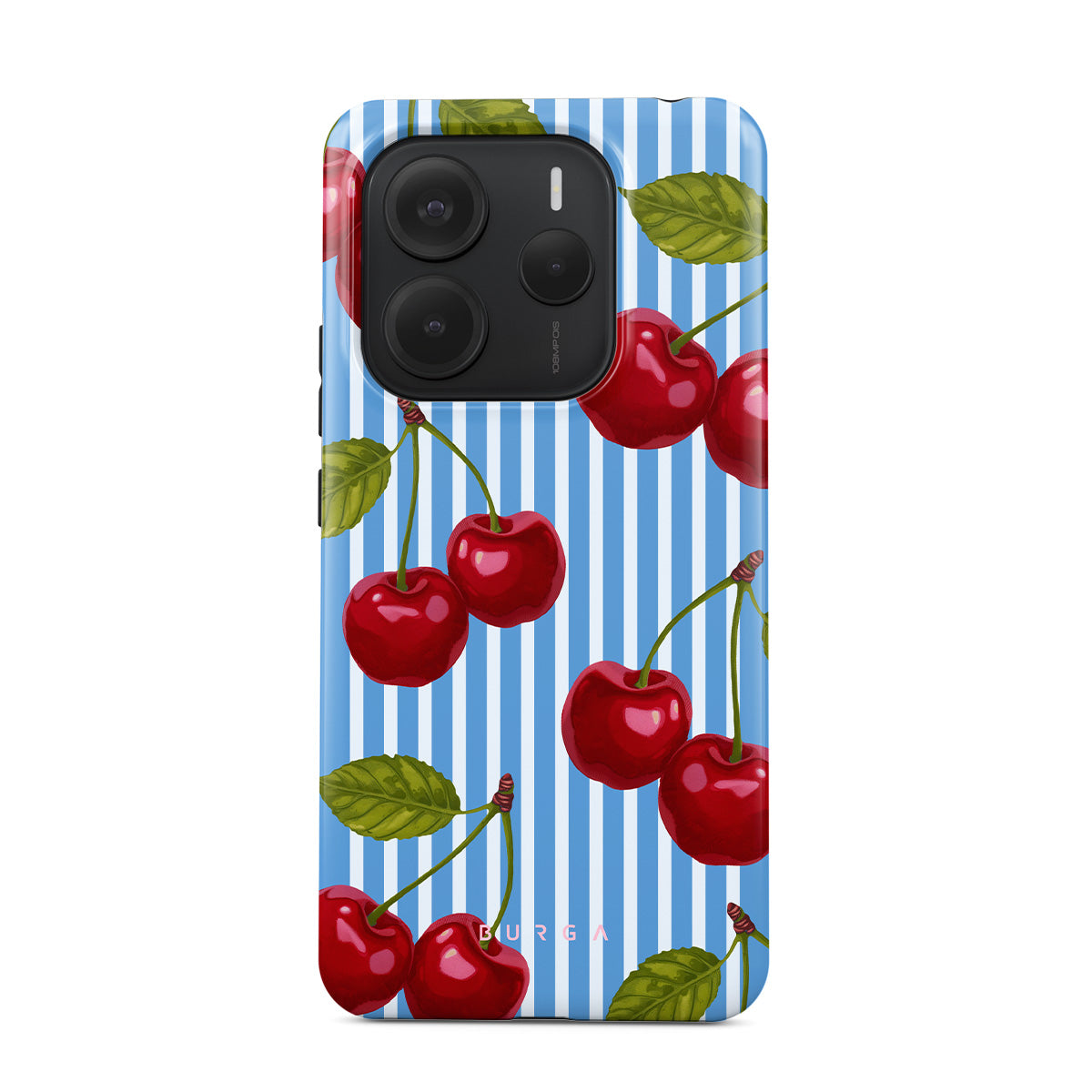 Cherries dangle like earrings from blue skies, a fun reminder of that first bite of summer, juicy and bursting with laughter. Meet our Sweet Moment Xiaomi Redmi Note 14 5G phone case design.