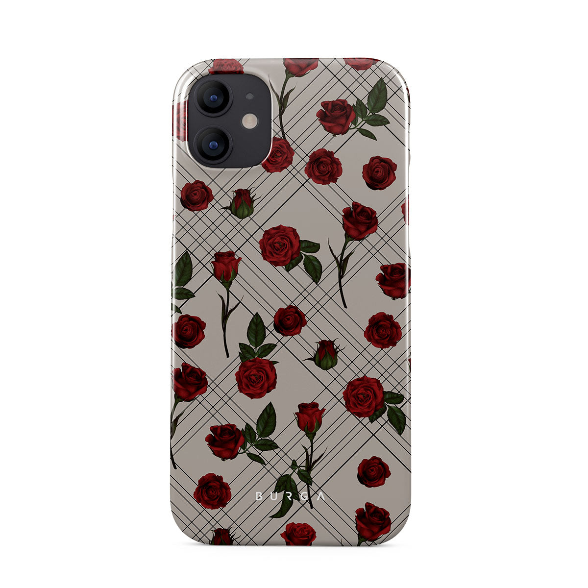 Embrace the subtle rebellion of our Sweet Sin iPhone 12 Mini phone case design. On a muted nude-gray canvas, scattered small red roses hint at passions hidden beneath the surface. A design that balances the delicate with the daring. Crafted for those who find beauty in the unexpected and wear their edge with elegance.