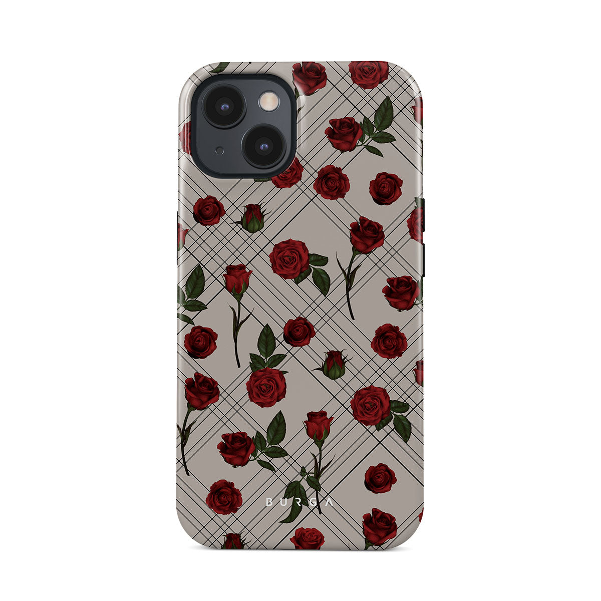 Embrace the subtle rebellion of our Sweet Sin iPhone 13 phone case design. On a muted nude-gray canvas, scattered small red roses hint at passions hidden beneath the surface. A design that balances the delicate with the daring. Crafted for those who find beauty in the unexpected and wear their edge with elegance.