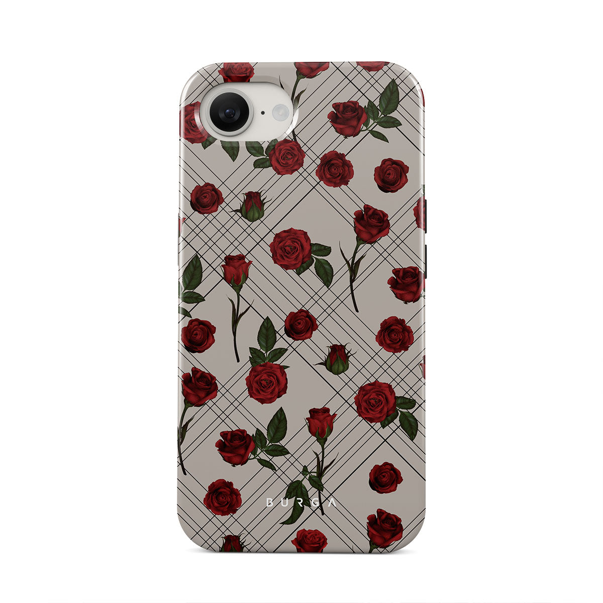Embrace the subtle rebellion of our Sweet Sin iPhone 16e phone case design. On a muted nude-gray canvas, scattered small red roses hint at passions hidden beneath the surface. A design that balances the delicate with the daring. Crafted for those who find beauty in the unexpected and wear their edge with elegance.