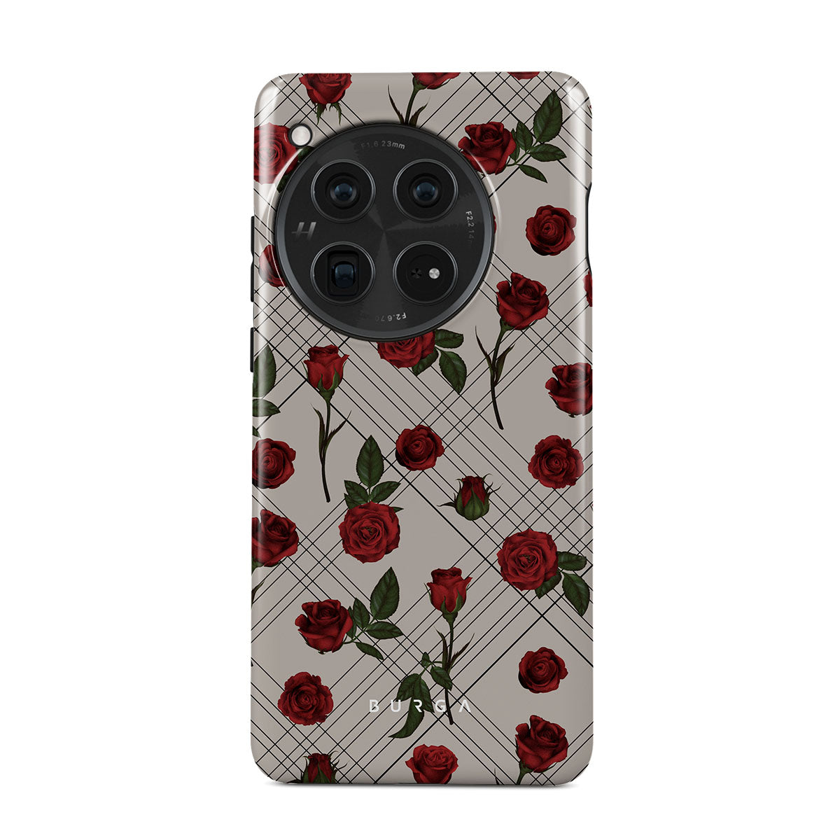 Embrace the subtle rebellion of our Sweet Sin OnePlus 12 phone case design. On a muted nude-gray canvas, scattered small red roses hint at passions hidden beneath the surface. A design that balances the delicate with the daring. Crafted for those who find beauty in the unexpected and wear their edge with elegance.