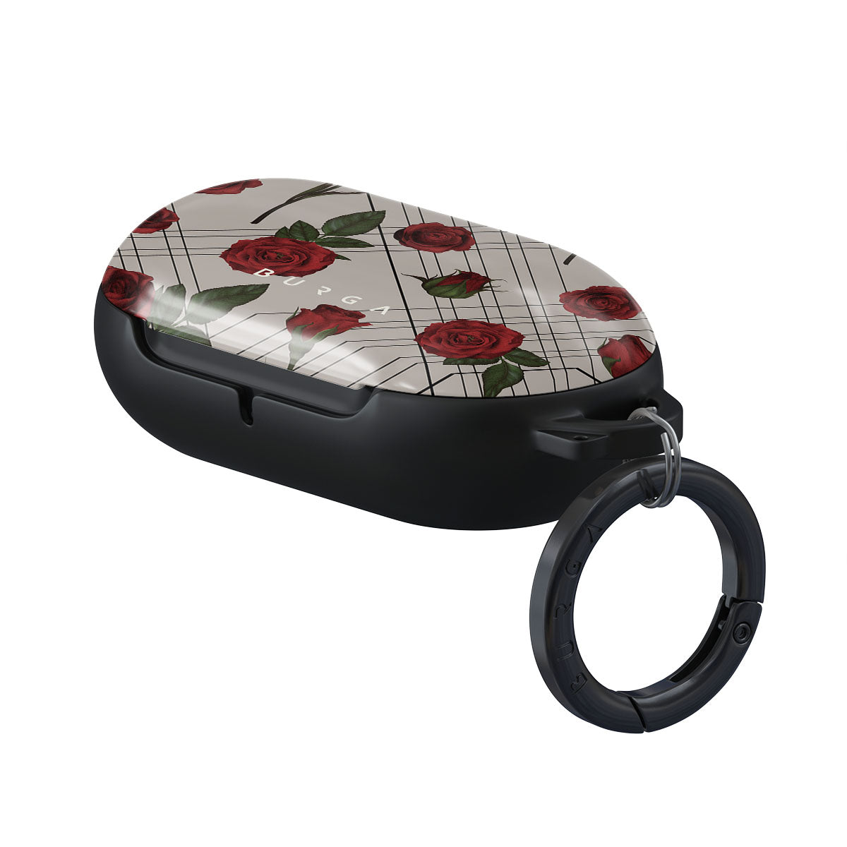 Embrace the subtle rebellion of our Sweet Sin Samsung Galaxy Buds case cover design. On a muted nude-gray canvas, scattered small red roses hint at passions hidden beneath the surface. A design that balances the delicate with the daring. Crafted for those who find beauty in the unexpected and wear their edge with elegance.