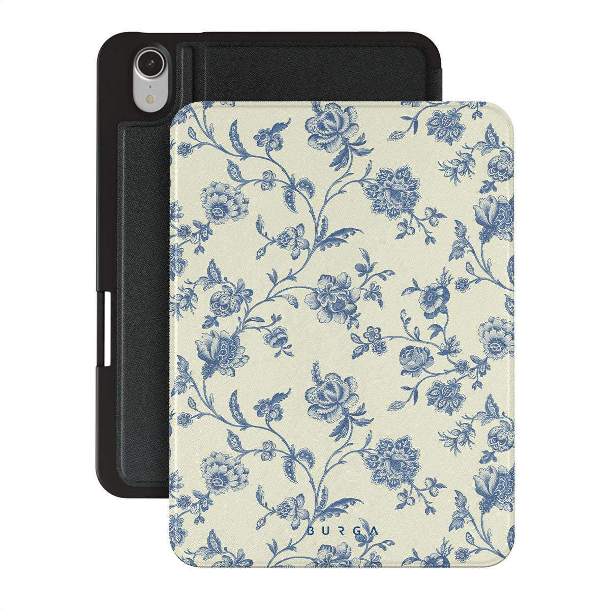 Hey, Sweetheart, here's a style secret: vintage blue flowers for that old-school charm. This iPad Mini 8.3 (A17 Pro/6th Gen) 2021 folio case design is perfect when you want to be sweet yet effortlessly cool.