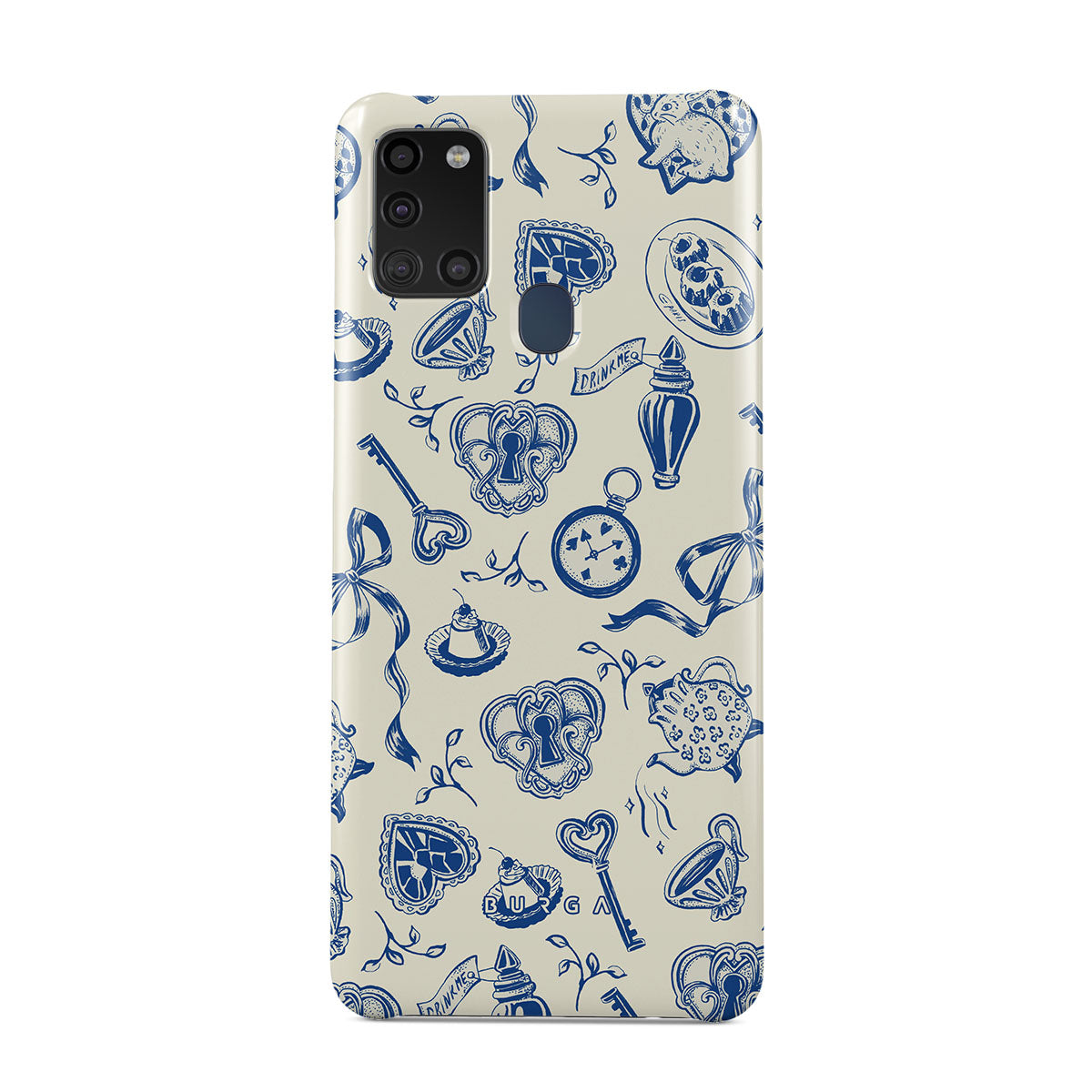 The Tea Party Samsung Galaxy A21s 4G phone case design is a porcelain puzzle—ribbons tangled, time warped, rules rewritten. Sit down, pour a cup, but don’t expect things to make sense. They never do.