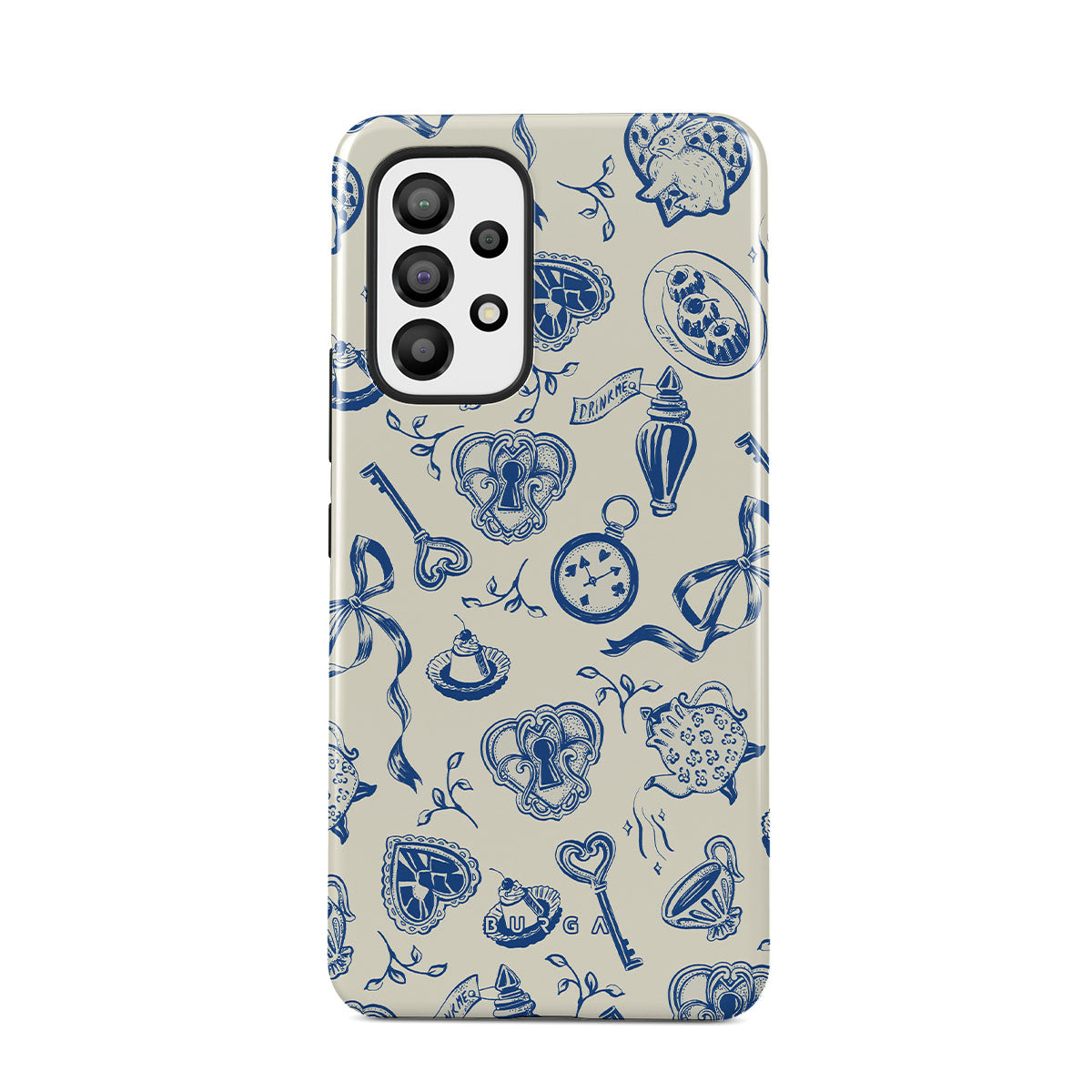 The Tea Party Samsung Galaxy A23 4G / 5G phone case design is a porcelain puzzle—ribbons tangled, time warped, rules rewritten. Sit down, pour a cup, but don’t expect things to make sense. They never do.