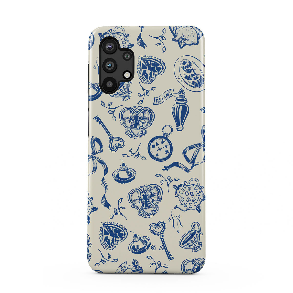 The Tea Party Samsung Galaxy A32 5G phone case design is a porcelain puzzle—ribbons tangled, time warped, rules rewritten. Sit down, pour a cup, but don’t expect things to make sense. They never do.