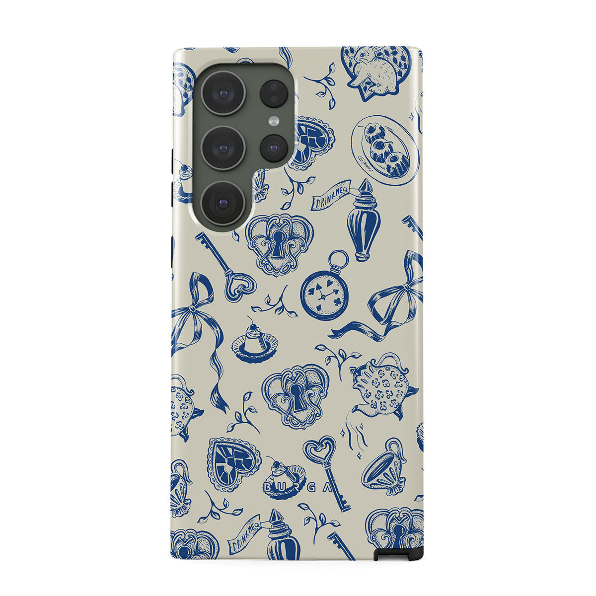 The Tea Party Samsung Galaxy S23 Ultra phone case design is a porcelain puzzle—ribbons tangled, time warped, rules rewritten. Sit down, pour a cup, but don’t expect things to make sense. They never do.