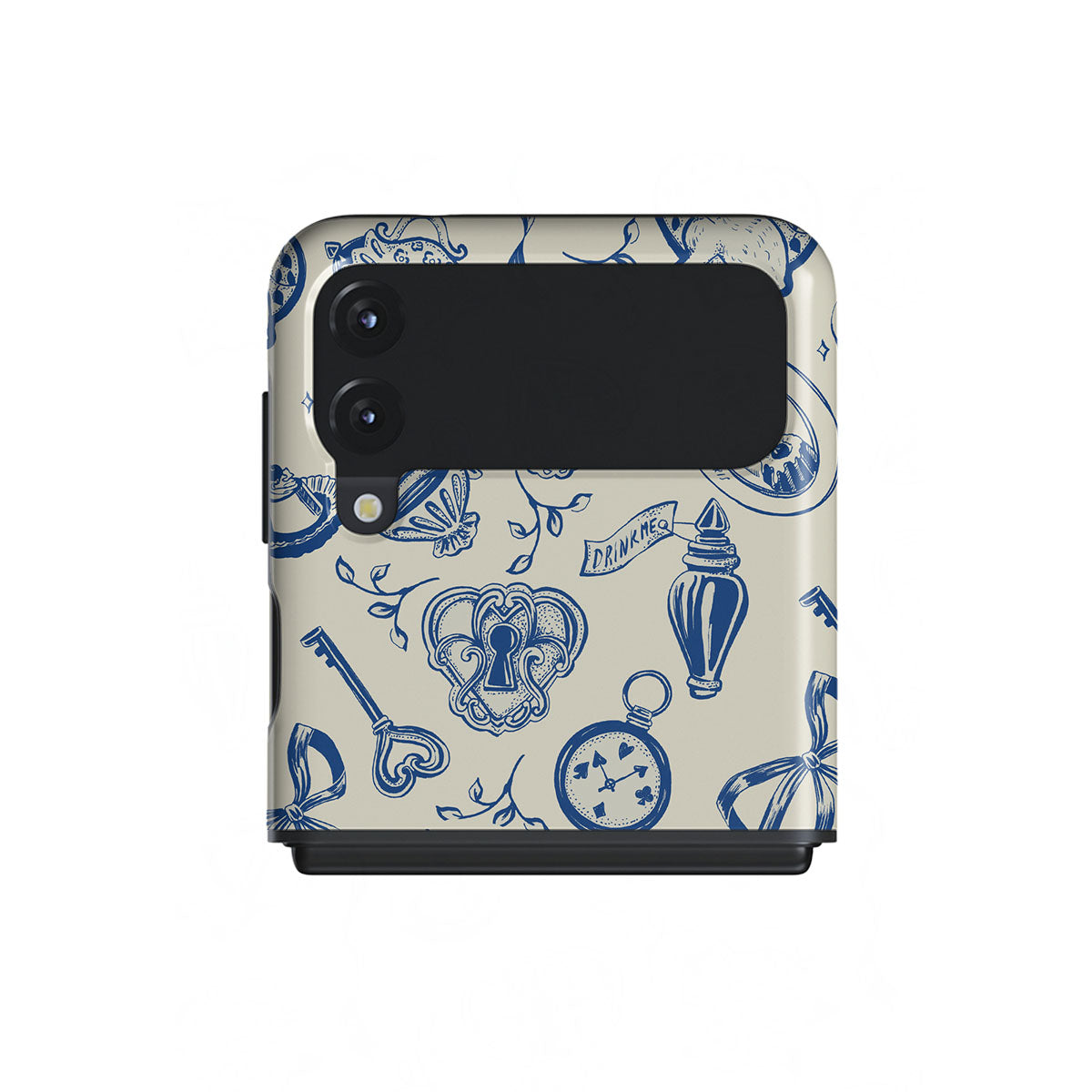 The Tea Party Samsung Galaxy Z Flip 3 phone case design is a porcelain puzzle—ribbons tangled, time warped, rules rewritten. Sit down, pour a cup, but don’t expect things to make sense. They never do.