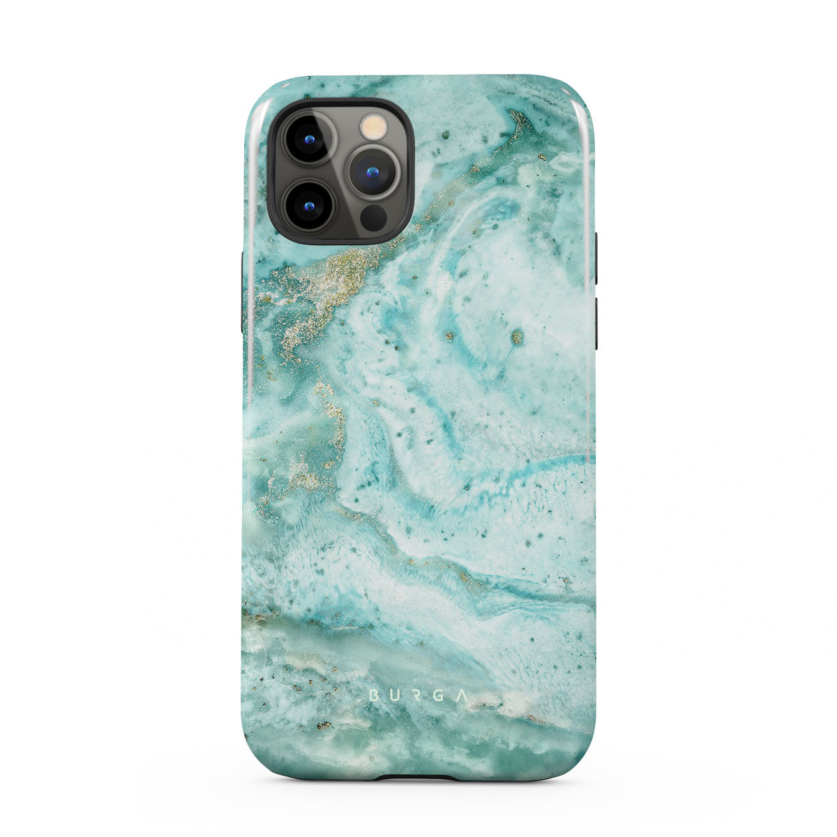 Our Uluwatu Waves iPhone 12 Pro phone case is an absolute teal dream. This phone cover features timeless and soft blue marble pattern enriched with golden color specks will surely remind you of a tropical beach teal waters while becoming a protective best friend for your cell phone.