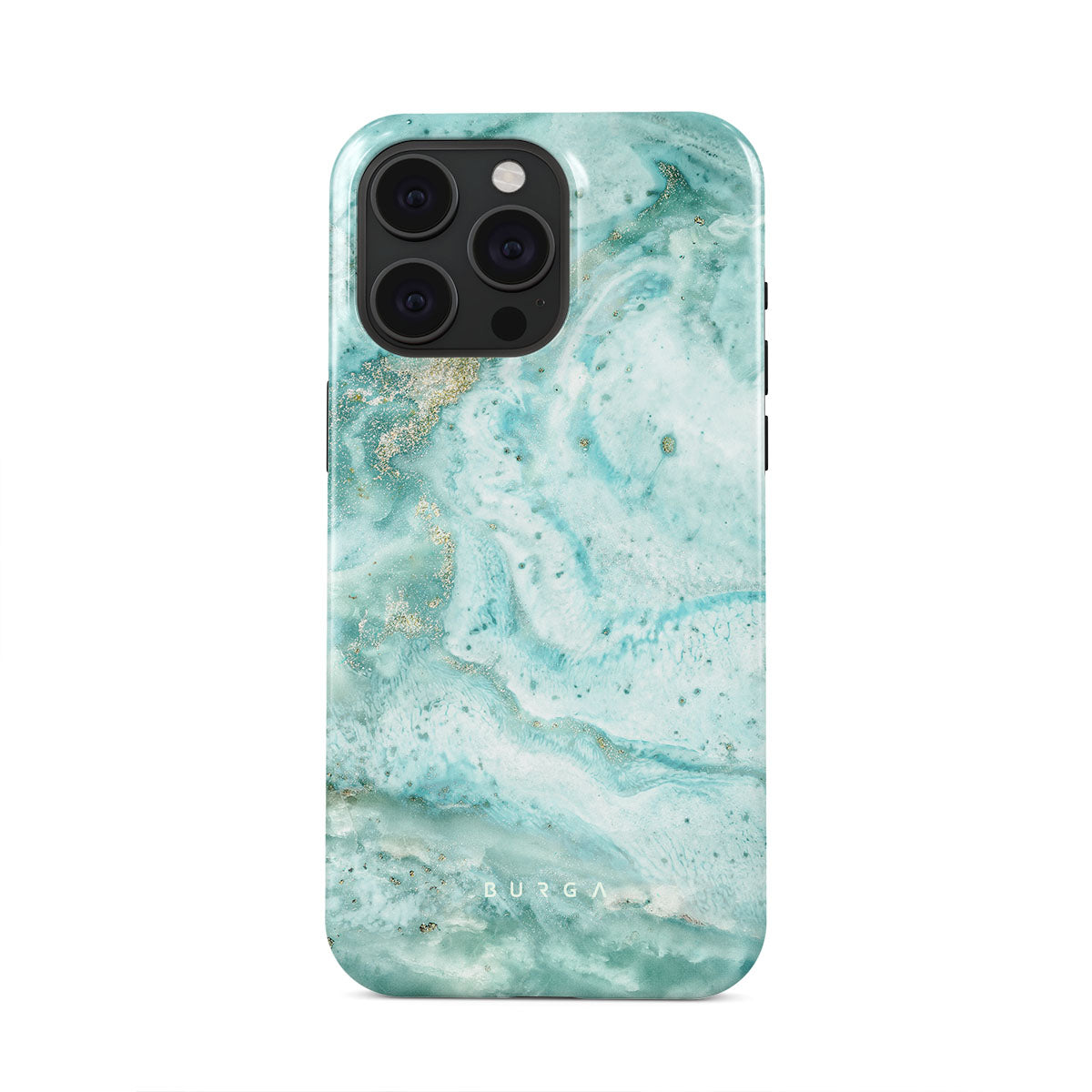 Our Uluwatu Waves iPhone 15 Pro phone case is an absolute teal dream. This phone cover features timeless and soft blue marble pattern enriched with golden color specks will surely remind you of a tropical beach teal waters while becoming a protective best friend for your cell phone.