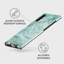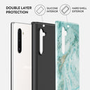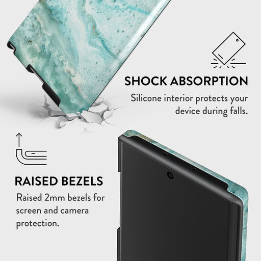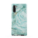 Our Uluwatu Waves Samsung Galaxy Note 10 phone case is an absolute teal dream. This phone cover features timeless and soft blue marble pattern enriched with golden color specks will surely remind you of a tropical beach teal waters while becoming a protective best friend for your cell phone.