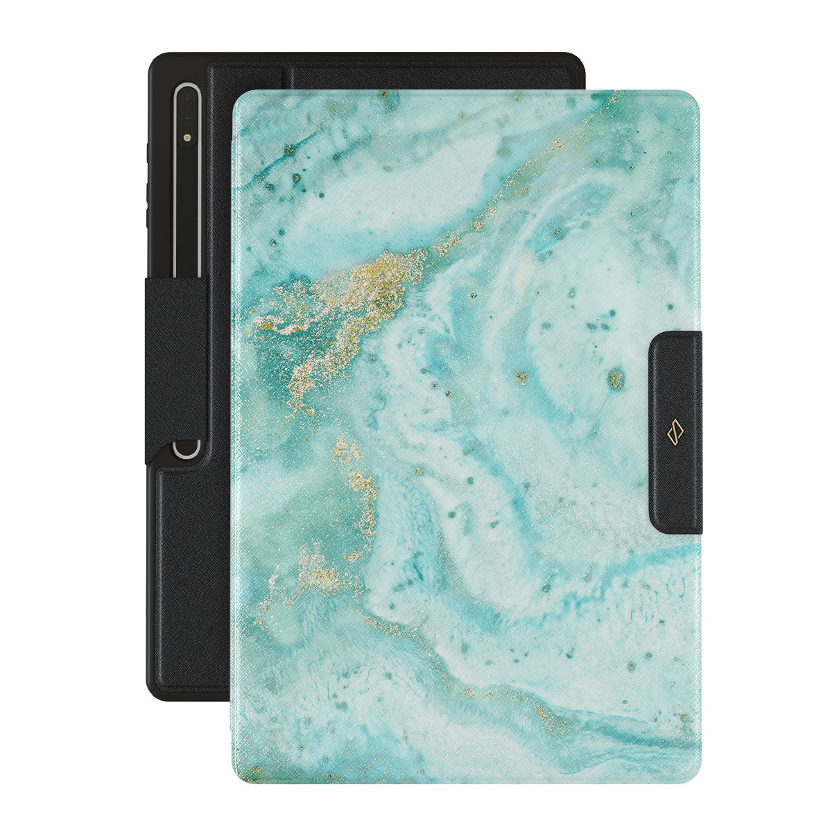 Our Uluwatu Waves Samsung Galaxy Tab S9 Ultra folio case is an absolute teal dream. This Galaxy Tab cover features timeless and soft blue marble pattern enriched with golden color specks will surely remind you of a tropical beach teal waters while becoming a protective best friend for your cell Galaxy Tab.