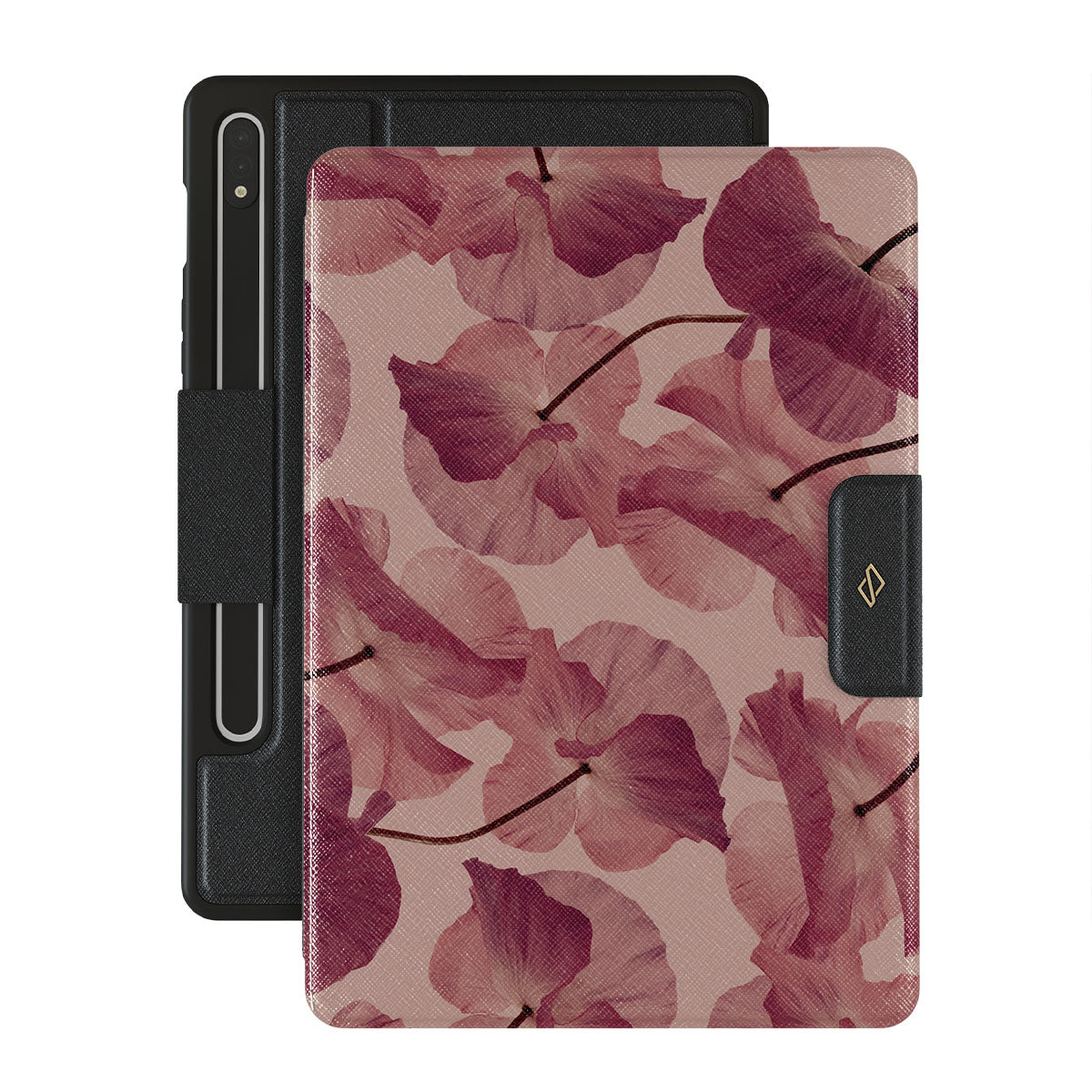 Capture the sweetness of a first love with Tender Kiss — a design that combines the delicate touch of petals on a soft pink background. This Samsung Galaxy Tab S9+ folio case design is crafted for those who cherish the tender moments and the dreamy whispers of a romantic past.