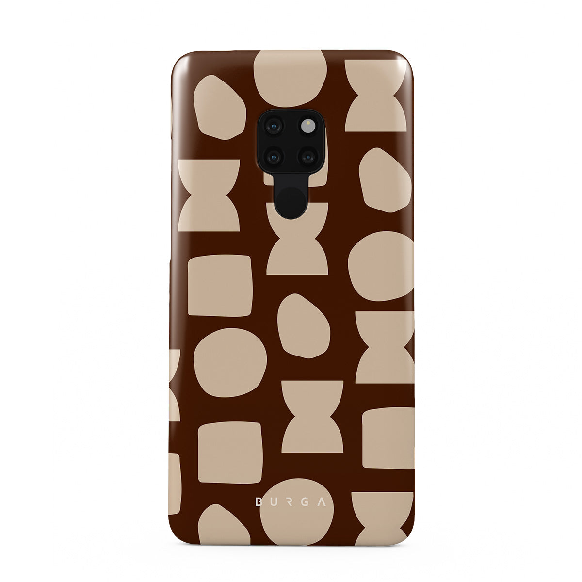 Our Terracotta Huawei Mate 20 phone case design whispers warmth and grounded energy. Against a rich brown background, an interplay of light shapes unfolds, captivating the eye with an array of circles, squares, and hourglasses. Each shape is a testament to the beauty found in simplicity.