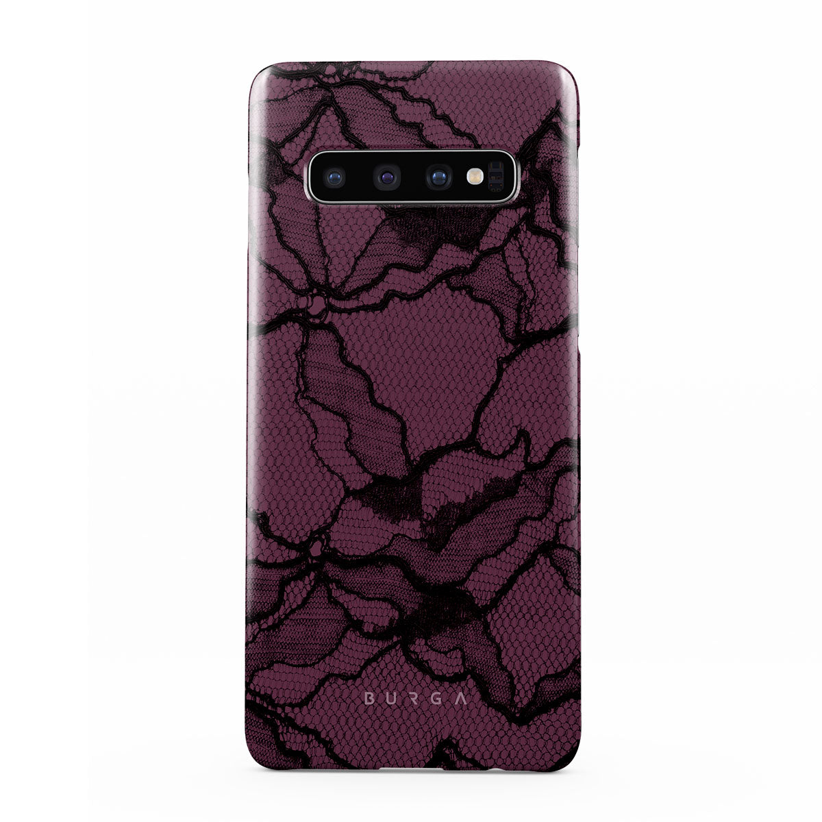 This design, reminiscent of a fragment of a vintage lace dress, captivates and invites touch. It’s perfect for the woman who commands attention with just a glance. With this Samsung Galaxy S10 Plus phone case design, every day is your stage, making you That Girl – the one who effortlessly blends mystery, boldness, and a flair of old-world charm into today's trends.
