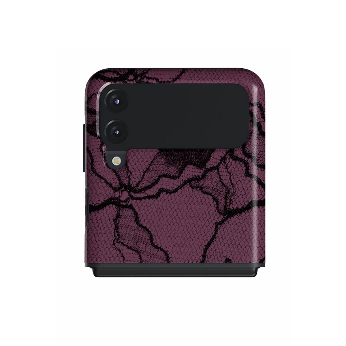 This design, reminiscent of a fragment of a vintage lace dress, captivates and invites touch. It’s perfect for the woman who commands attention with just a glance. With this Samsung Galaxy Z Flip 3 phone case design, every day is your stage, making you That Girl – the one who effortlessly blends mystery, boldness, and a flair of old-world charm into today's trends.