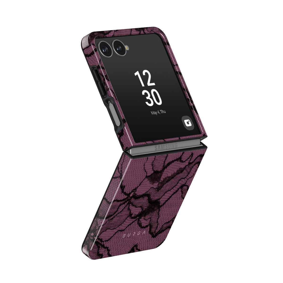 This design, reminiscent of a fragment of a vintage lace dress, captivates and invites touch. It’s perfect for the woman who commands attention with just a glance. With this Samsung Galaxy Z Flip 7 phone case design, every day is your stage, making you That Girl – the one who effortlessly blends mystery, boldness, and a flair of old-world charm into today's trends.