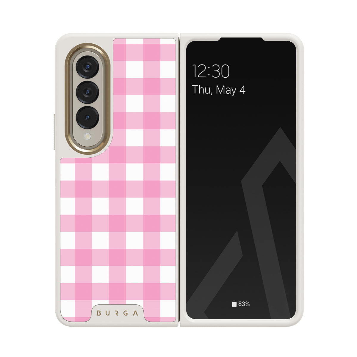 A design that's all about joy. A mix of bright energy, imagination, and a dash of daring. Think Pink is your fashion playground, where simplicity winks at chaos and elegance breaks into a playful run. So come play, dream, and remember: always Think Pink with Samsung Galaxy Z Fold 4 phone case.