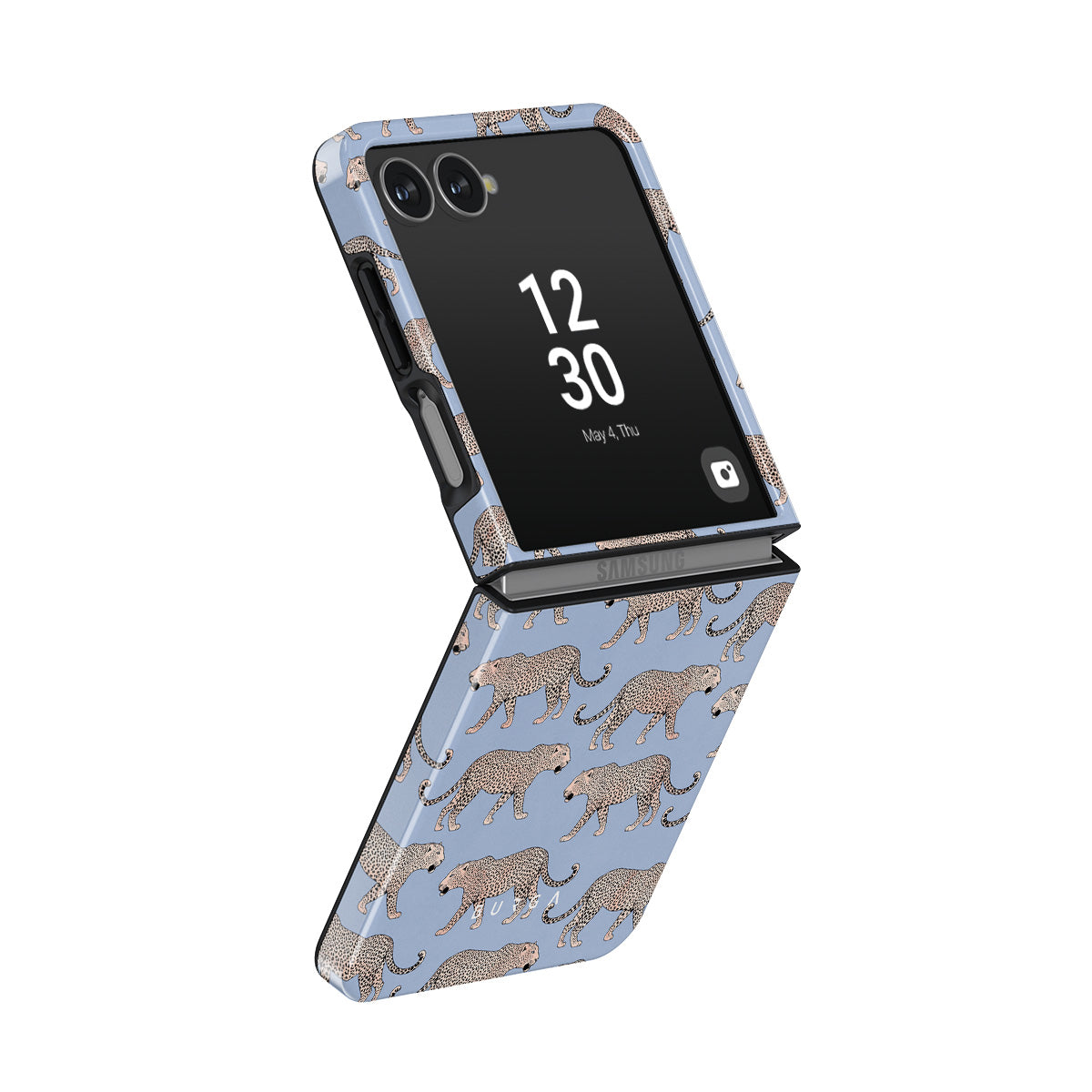 Be wild and free with our Tourist Trap Samsung Galaxy Z Flip 7 phone case. The tiger print in a pastel blue background has a chic feel of an actual designer item. Add some edge to your style and also protect your phone from any sharp edges at the same time.