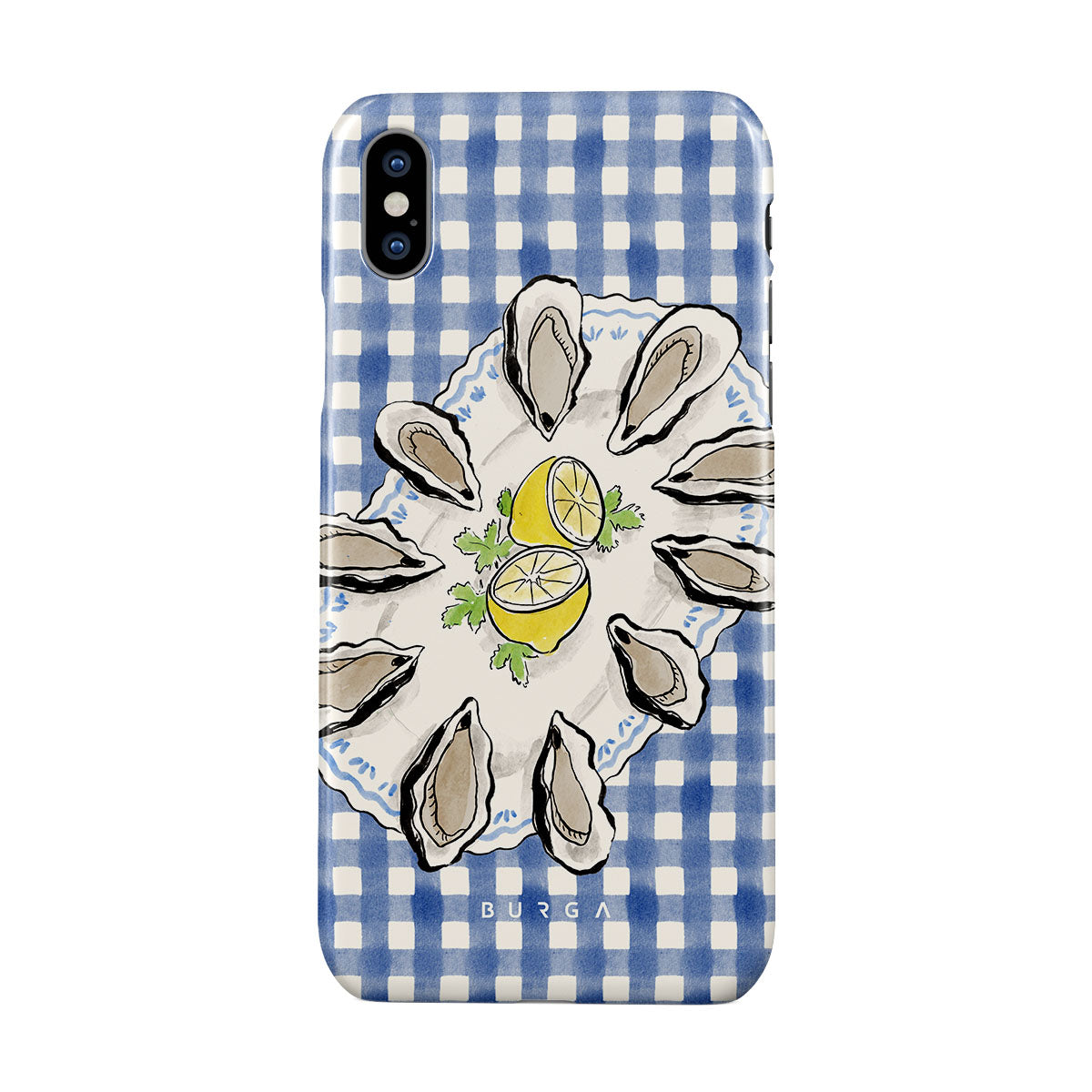 Fresh oysters, zesty lemon, and a touch of Mediterranean breeze wrapped in blue gingham. This iPhone X / XS Case phone case design is the secret menu only locals know about—simple, fresh, and absolutely irresistible.