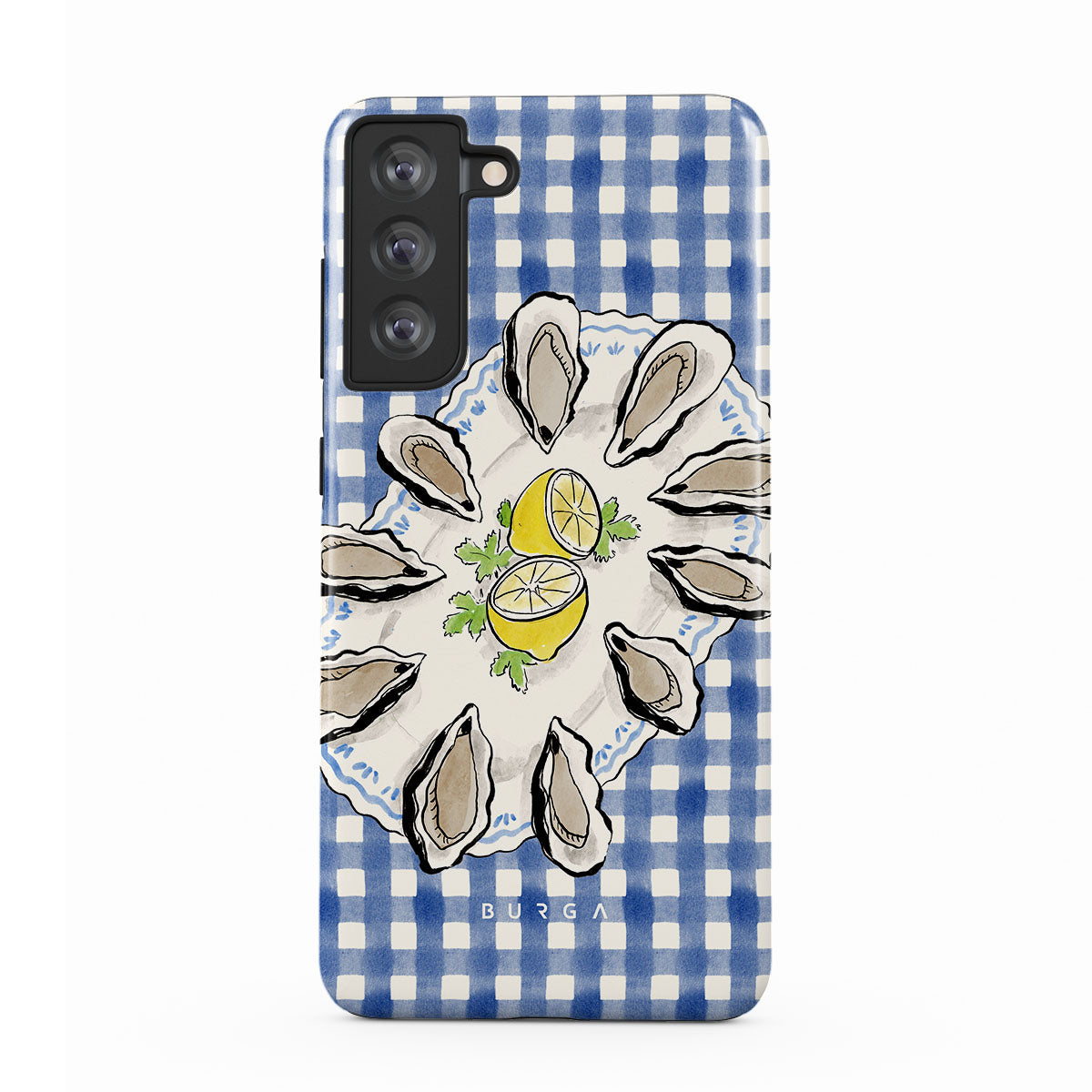 Fresh oysters, zesty lemon, and a touch of Mediterranean breeze wrapped in blue gingham. This Samsung Galaxy S21 FE Case phone case design is the secret menu only locals know about—simple, fresh, and absolutely irresistible.