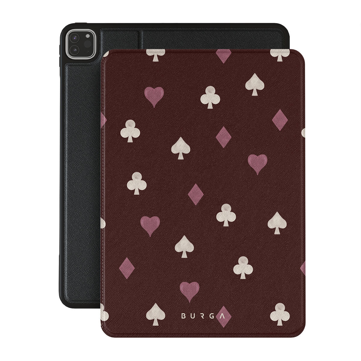 Nothing is as it appears. Hearts, clubs, diamonds, and spades—stacked in your favor or playing against you? This iPad Pro 11 (4th/3rd Gen) folio case design features a rich burgundy background and minimalist suits that make for a game where the rules are constantly shifting.