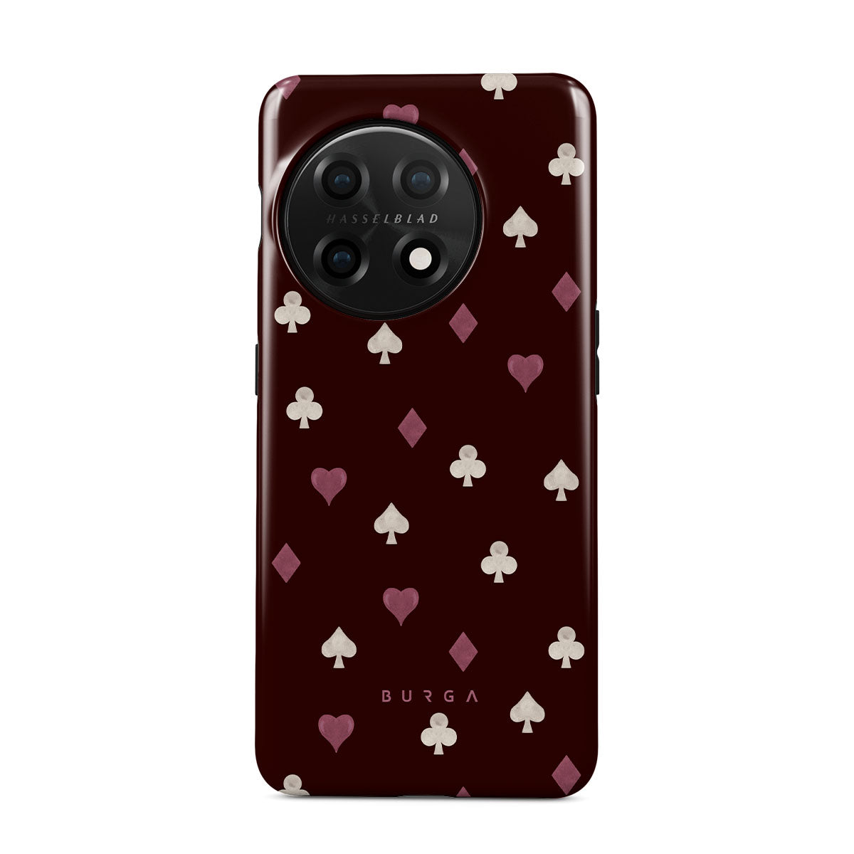 Nothing is as it appears. Hearts, clubs, diamonds, and spades—stacked in your favor or playing against you? This OnePlus 11 phone case design features a rich burgundy background and minimalist suits that make for a game where the rules are constantly shifting.
