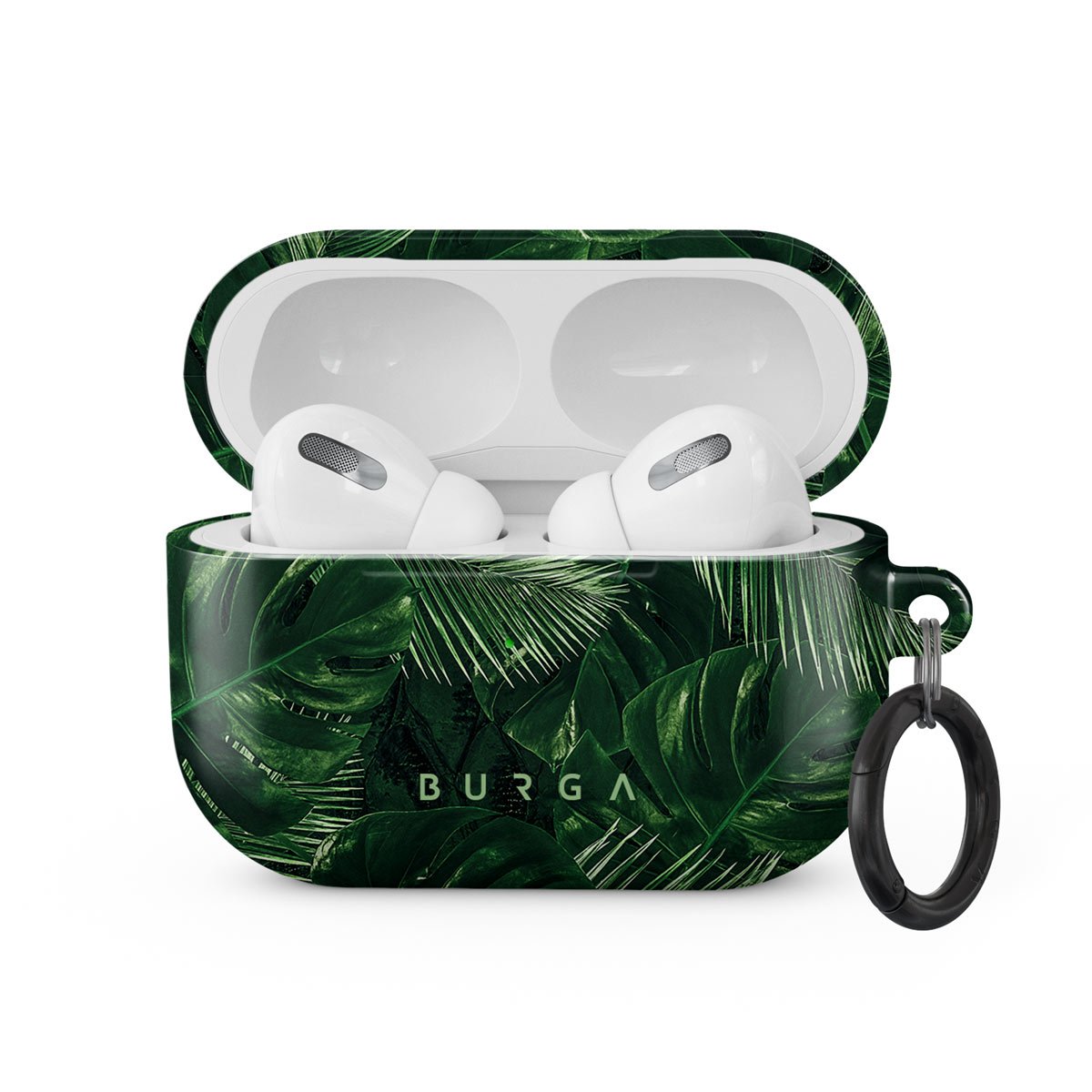 Our Tropical Garden Apple Airpods Pro case cover showcases mesmerizing greens. Palm fronds and Monstera leaves' unique patterns will add a tropical touch to your wardrobe while offering heavy-duty protection to your AirPods case.