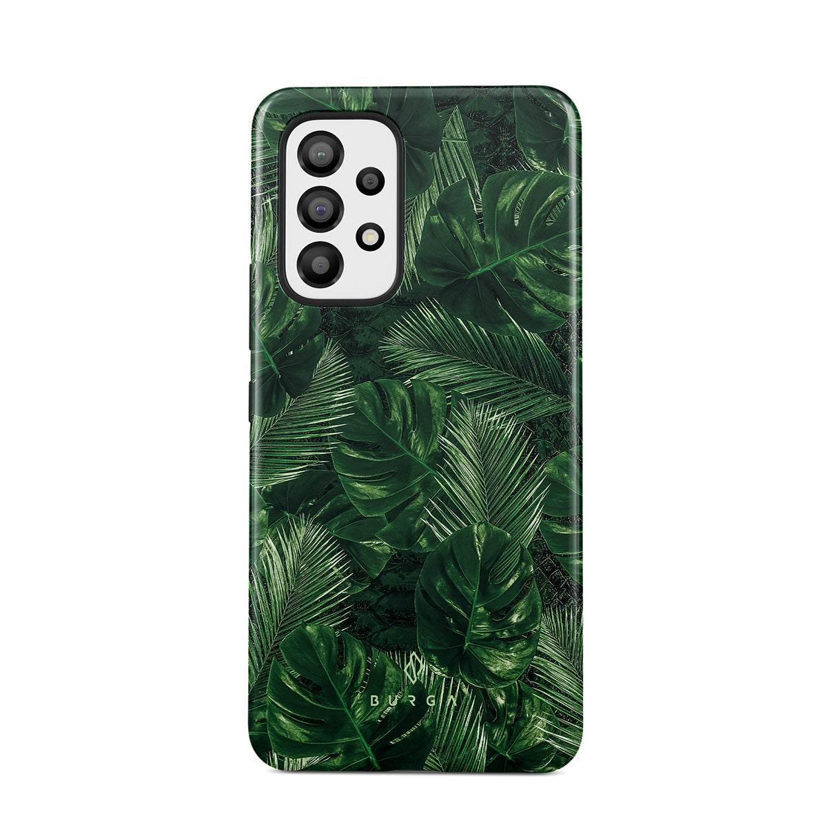Enter the World of Jungles with our Tropical Garden Samsung Galaxy A72 phone case cover showcasing mesmerizing greens. Palm fronds and Monstera leaves' unique patterns will add a tropical touch to your wardrobe while offering heavy-duty protection to your phone.