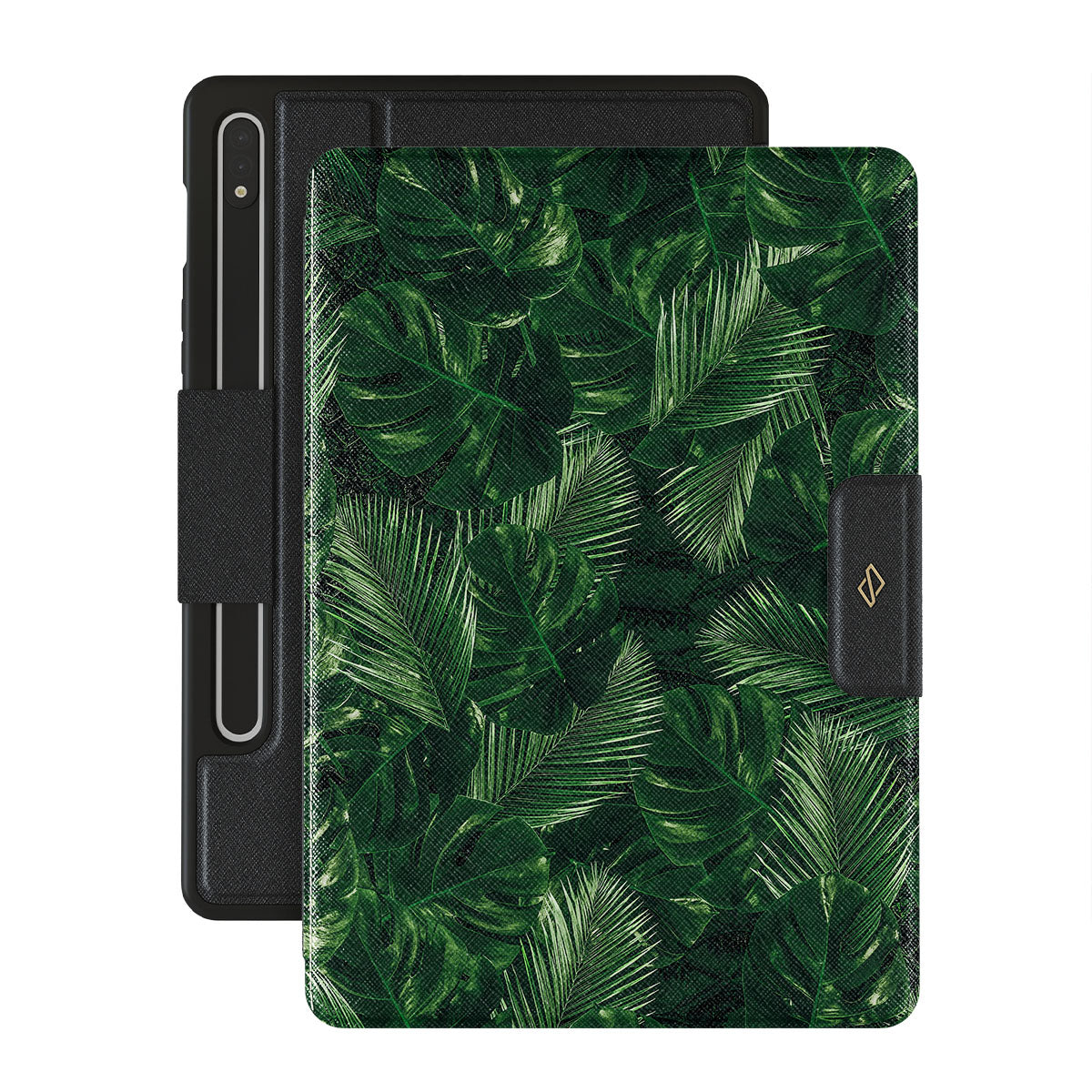 Enter the World of Jungles with our Tropical Garden Samsung Galaxy Tab S10+ folio case cover showcasing mesmerizing greens. Palm fronds and Monstera leaves' unique patterns will add a tropical touch to your wardrobe while offering heavy-duty protection to your Galaxy Tab.