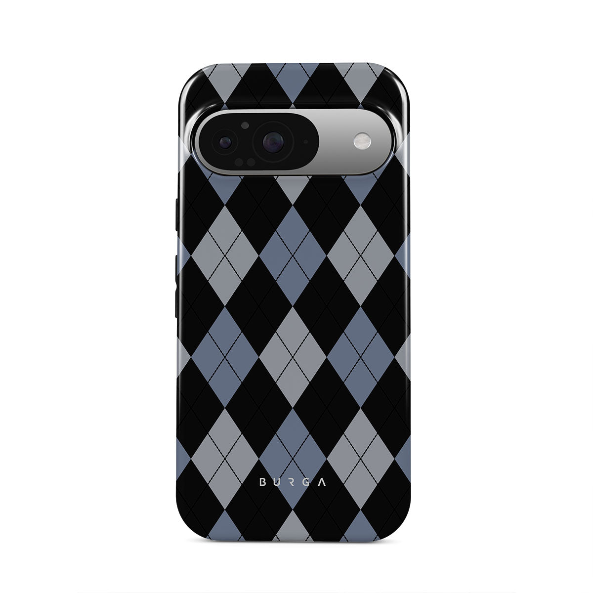 Discover our Trouble Google Pixel 9 phone case design—a classic argyle pattern featuring stark black diamonds that seamlessly blend with two distinct shades of blue. Made for those who respect the classics but aren't afraid to disrupt the norm.