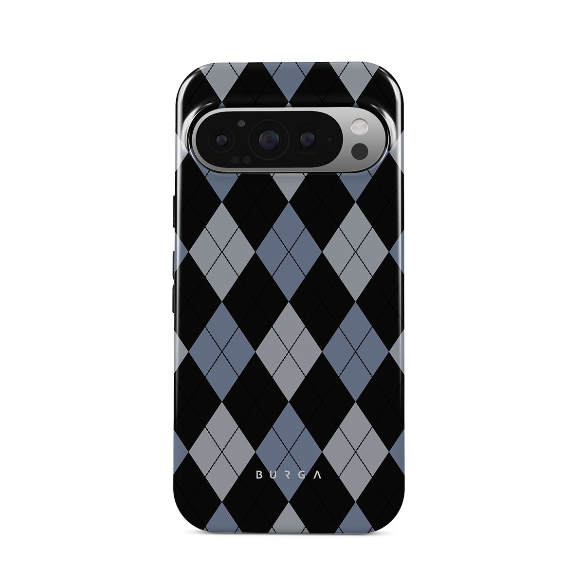 Discover our Trouble Google Pixel 9 Pro XL phone case design—a classic argyle pattern featuring stark black diamonds that seamlessly blend with two distinct shades of blue. Made for those who respect the classics but aren't afraid to disrupt the norm.