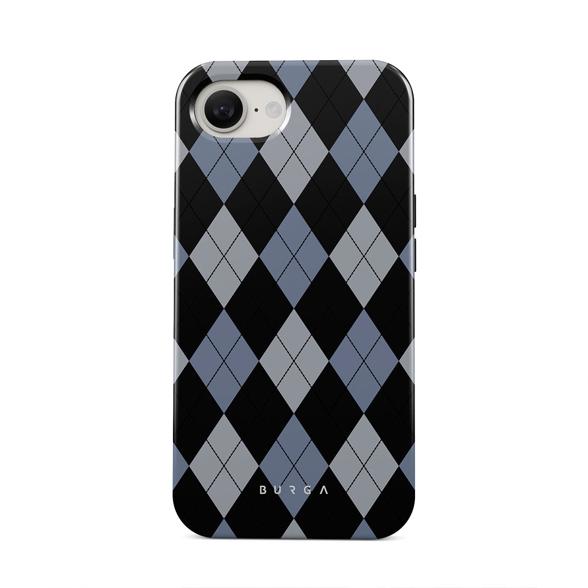 Discover our Trouble iPhone 16e phone case design—a classic argyle pattern featuring stark black diamonds that seamlessly blend with two distinct shades of blue. Made for those who respect the classics but aren't afraid to disrupt the norm.