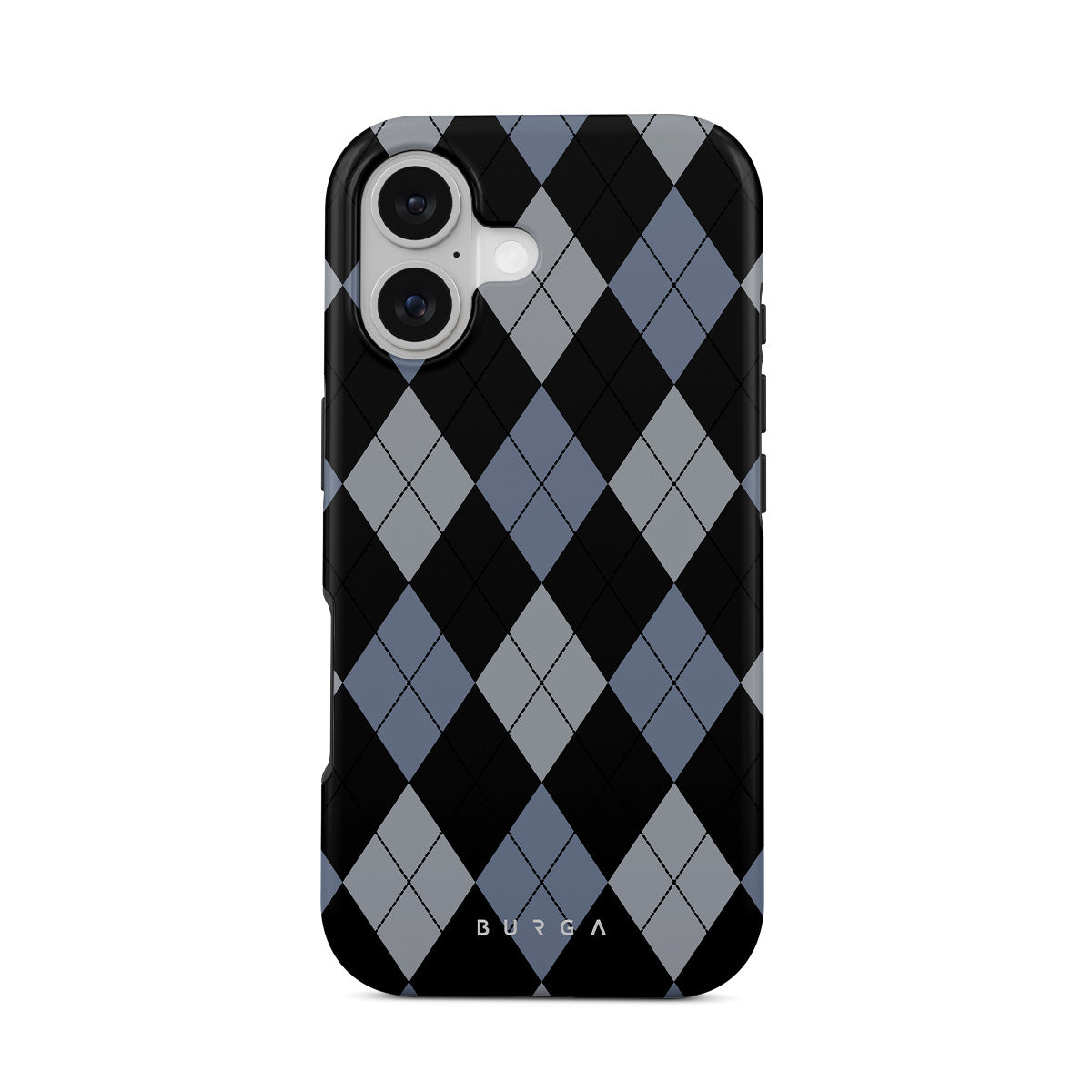 Discover our Trouble iPhone 17 phone case design—a classic argyle pattern featuring stark black diamonds that seamlessly blend with two distinct shades of blue. Made for those who respect the classics but aren't afraid to disrupt the norm.
