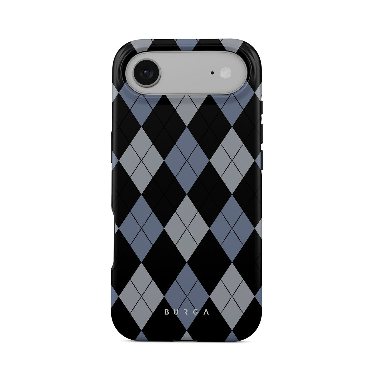 Discover our Trouble iPhone Air phone case design—a classic argyle pattern featuring stark black diamonds that seamlessly blend with two distinct shades of blue. Made for those who respect the classics but aren't afraid to disrupt the norm.